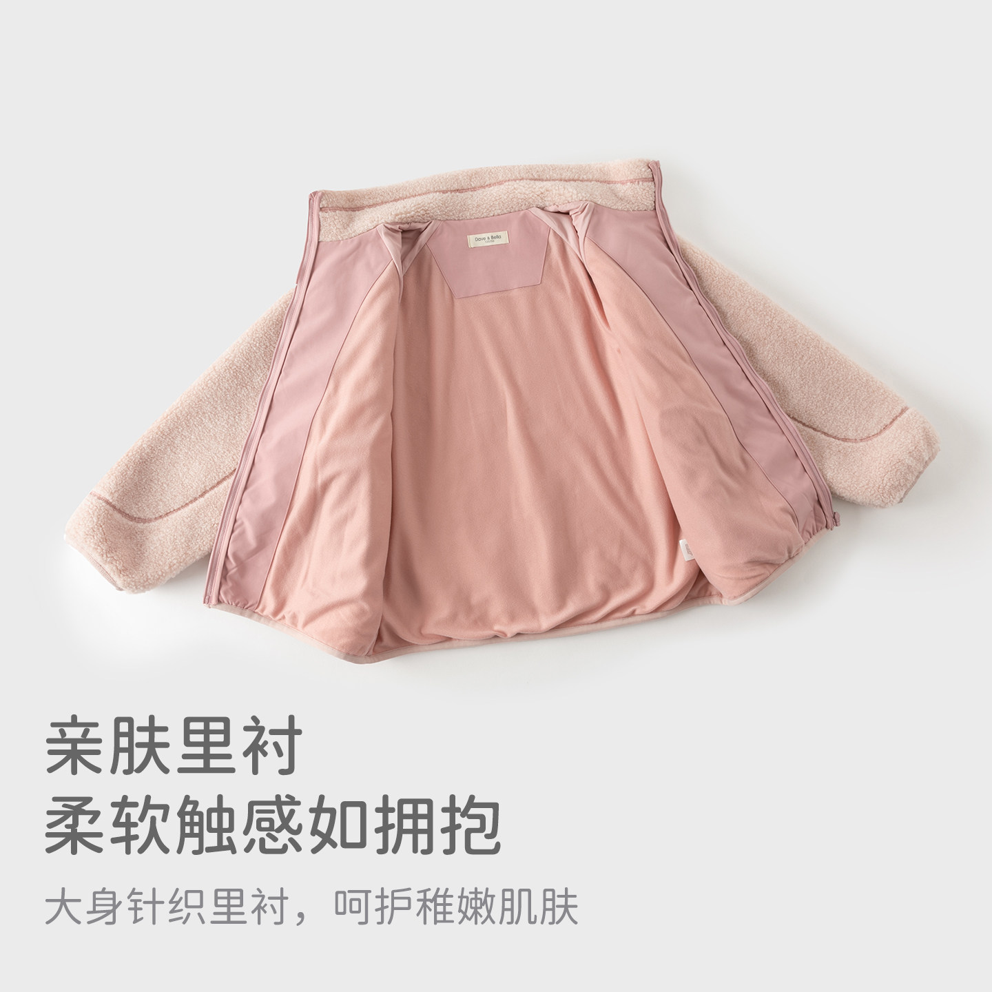戴维贝拉中大童外套2026冬装新款女童男童毛绒保暖拼接夹克上衣