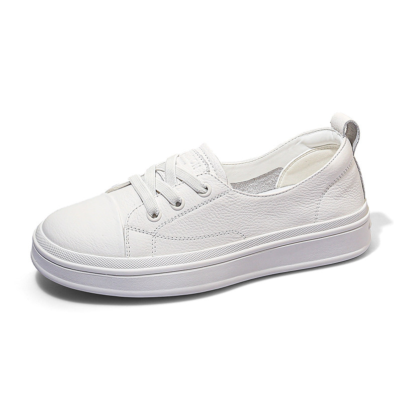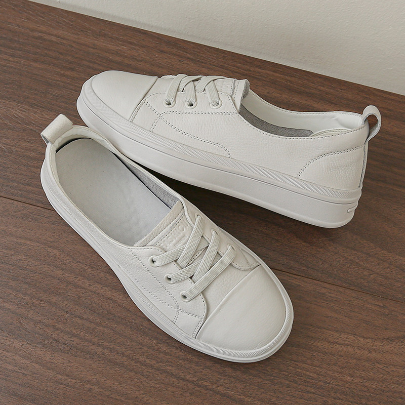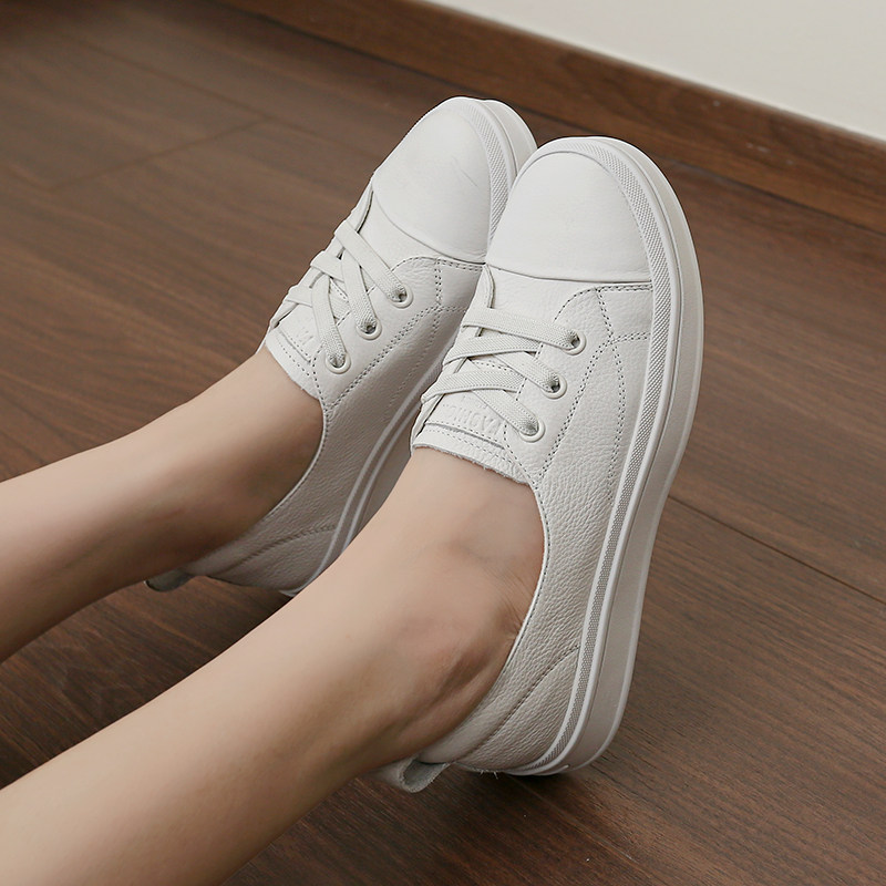 头层牛皮浅口小白鞋女秋季薄款厚底透气一脚蹬女单鞋运动休闲板鞋