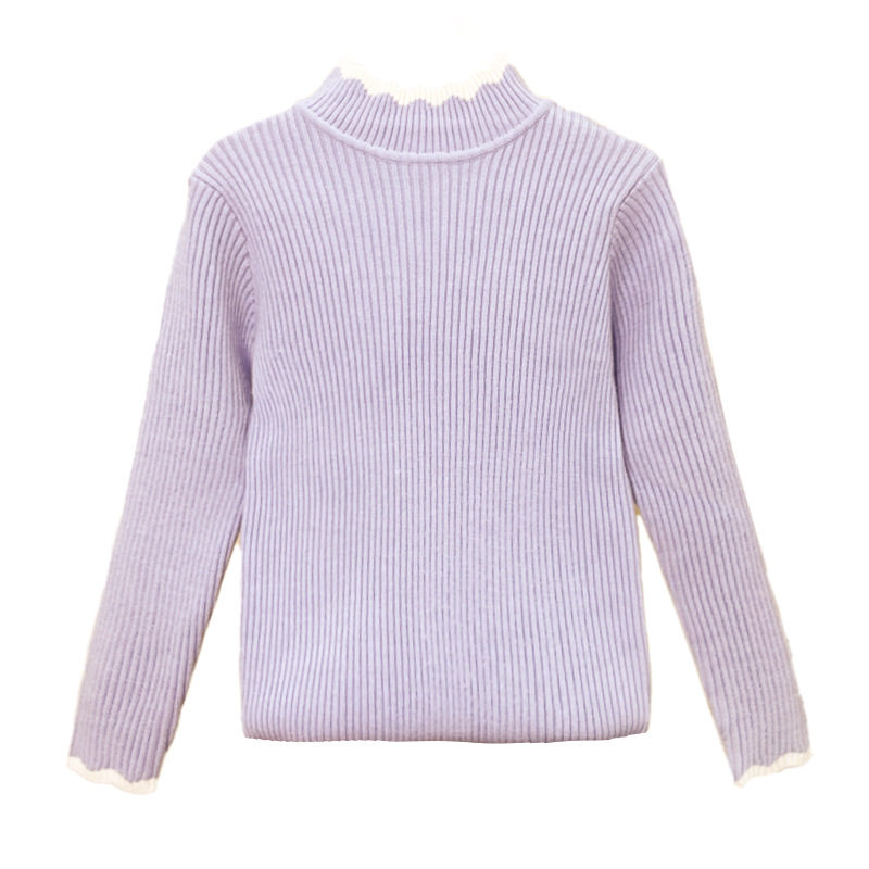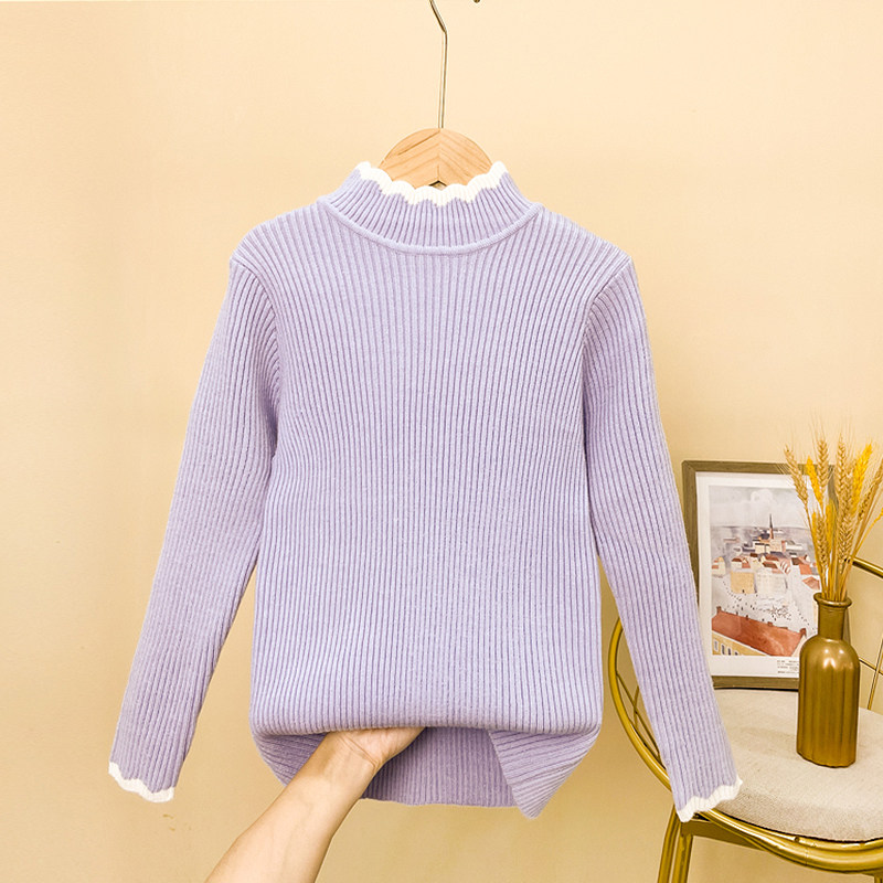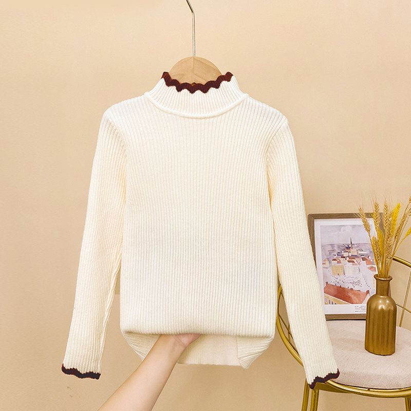 女童毛衣春秋2026新款春季儿童打底衫加绒白色大童早春一体绒内搭