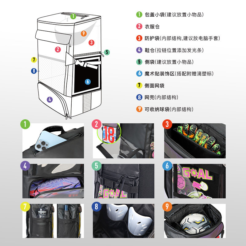 小李子李质造足球训练户外装备包比赛多功能收纳旅行双肩包成人男