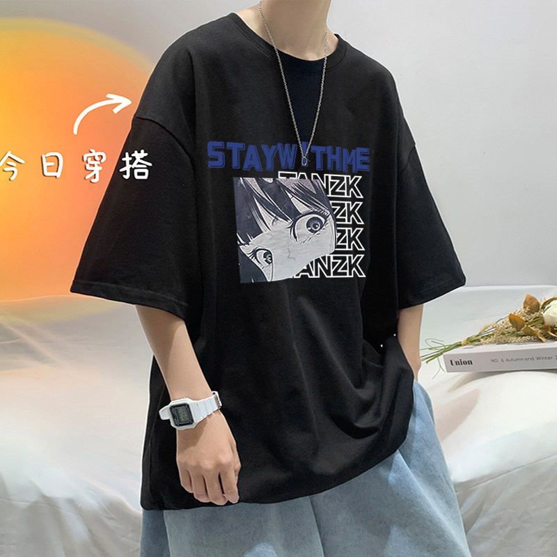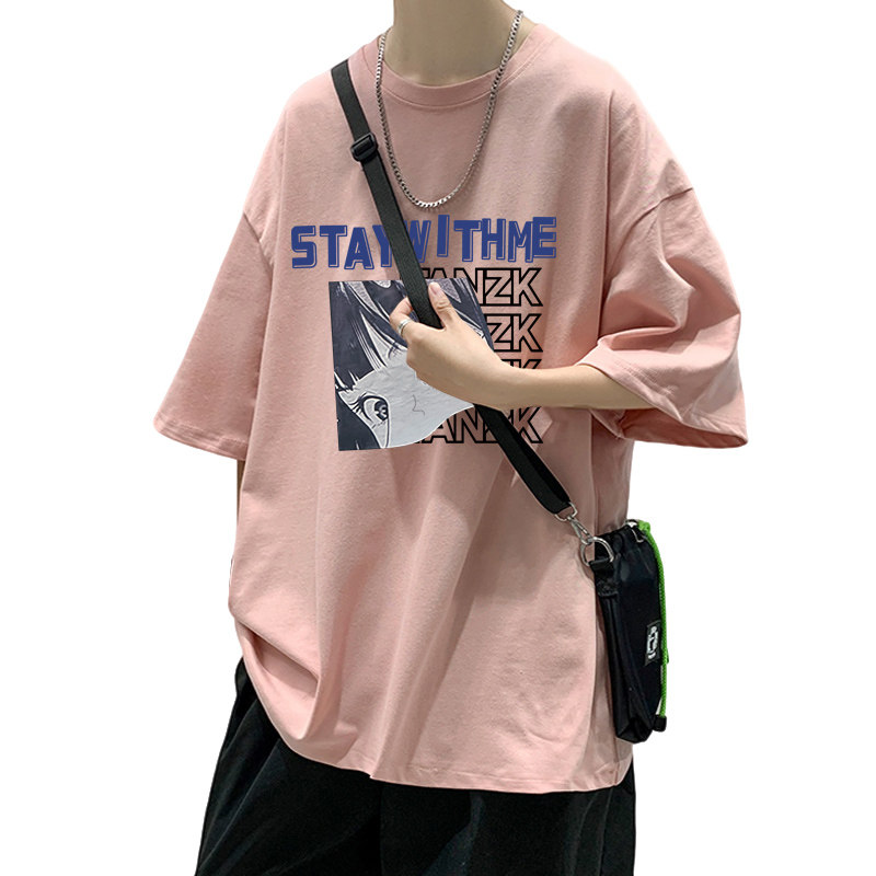 夏季男生短袖纯棉t恤薄款宽松青少年初中学生粉色体恤衫上衣夏装