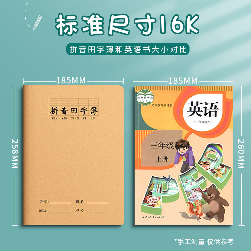 16k拼音田字格大本生字本小学生专用标准统一牛皮纸作业本语文数学英语田字格二四五三到六年级加厚汉语拼音
