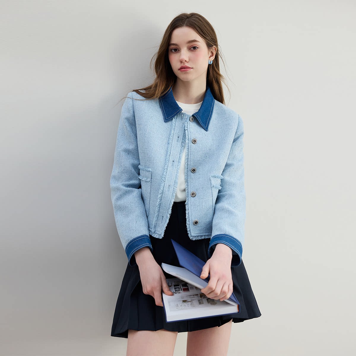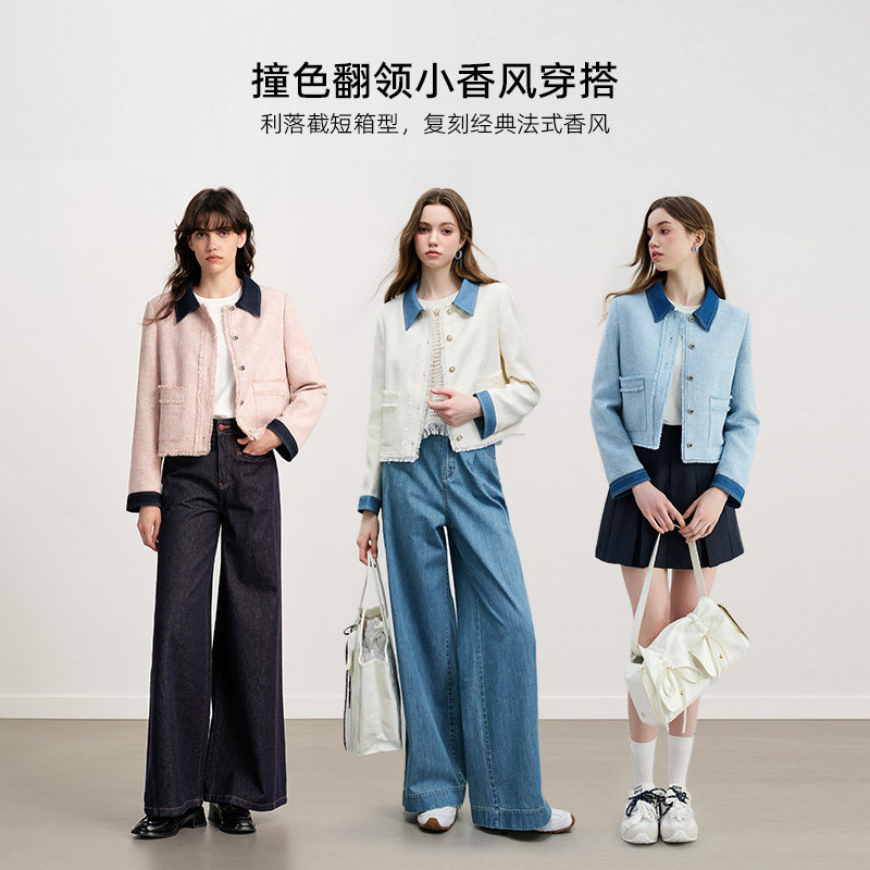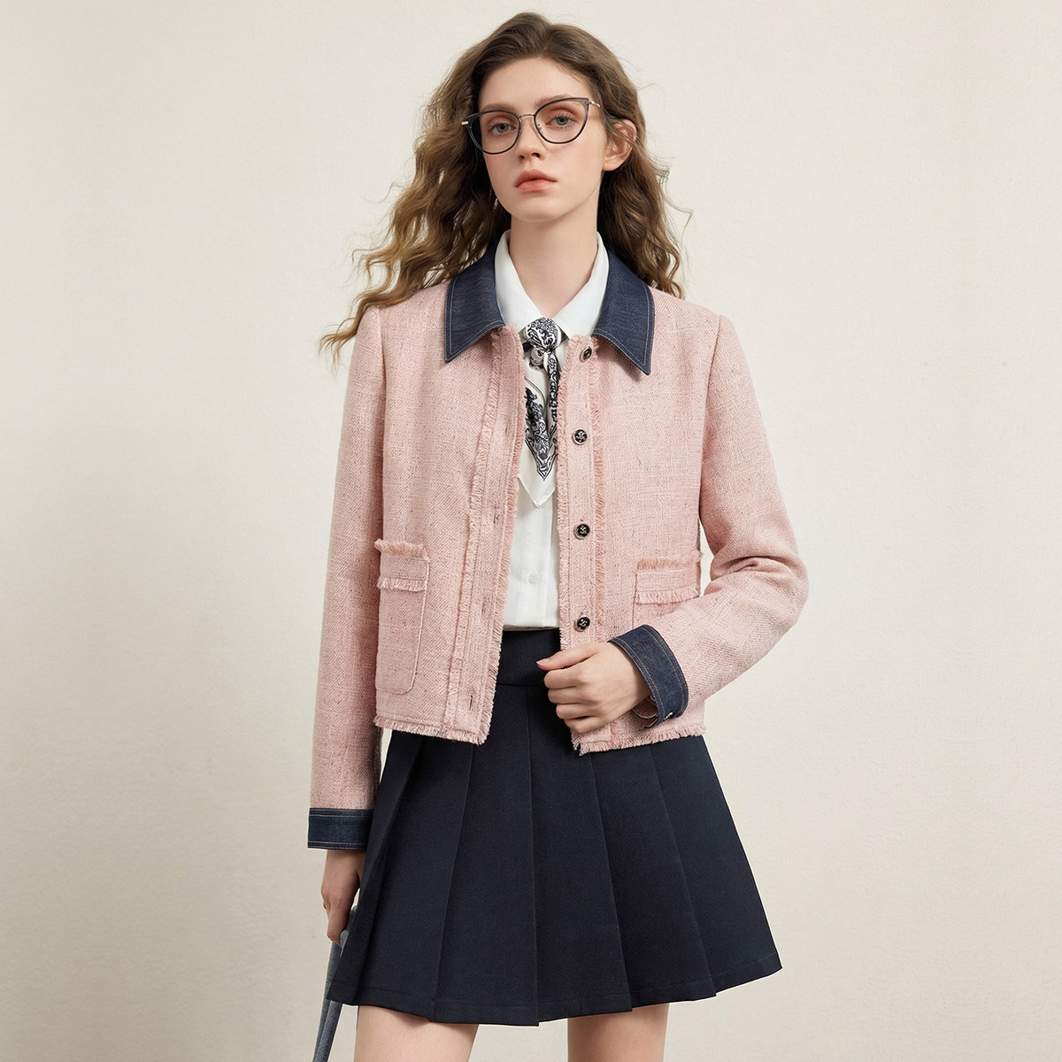 KBNE粉色法式小香风外套女装2026春季新款小个子短款长袖夹克上衣