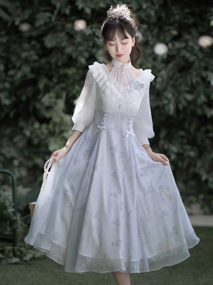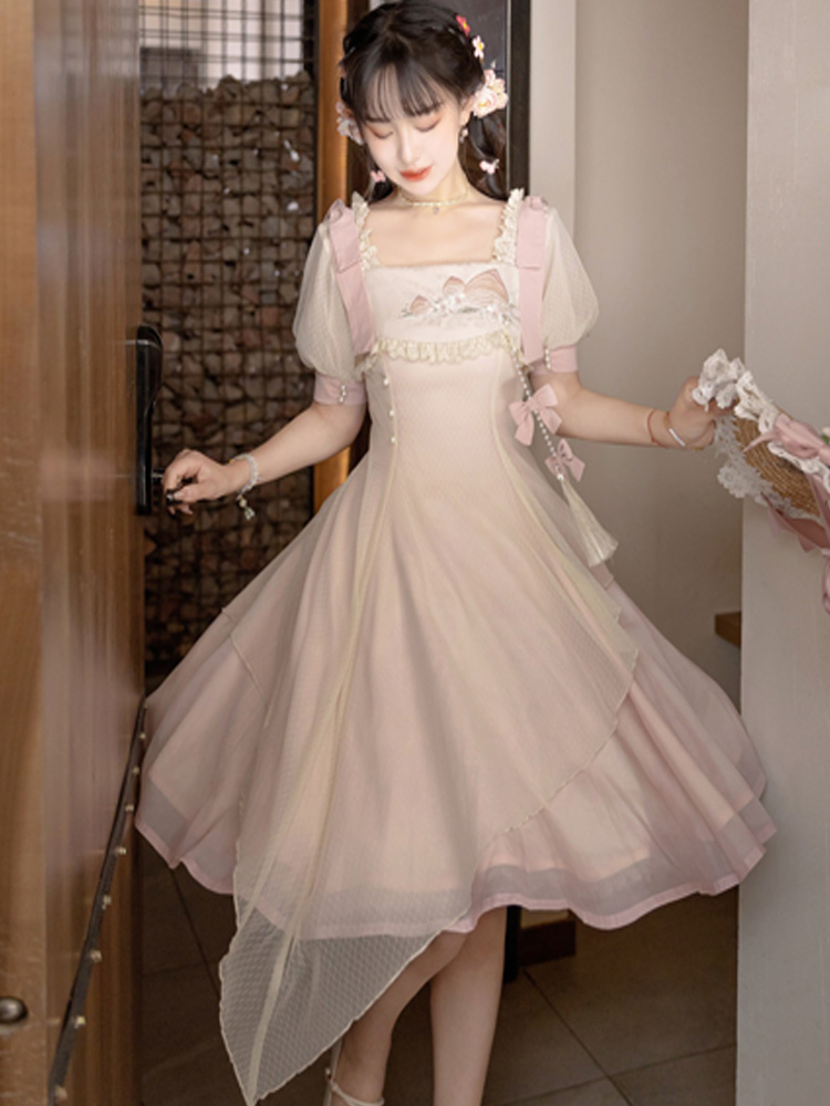 古风短袖连衣裙汉元素裙子中式国风日常甜美中长款雪纺气质夏季女