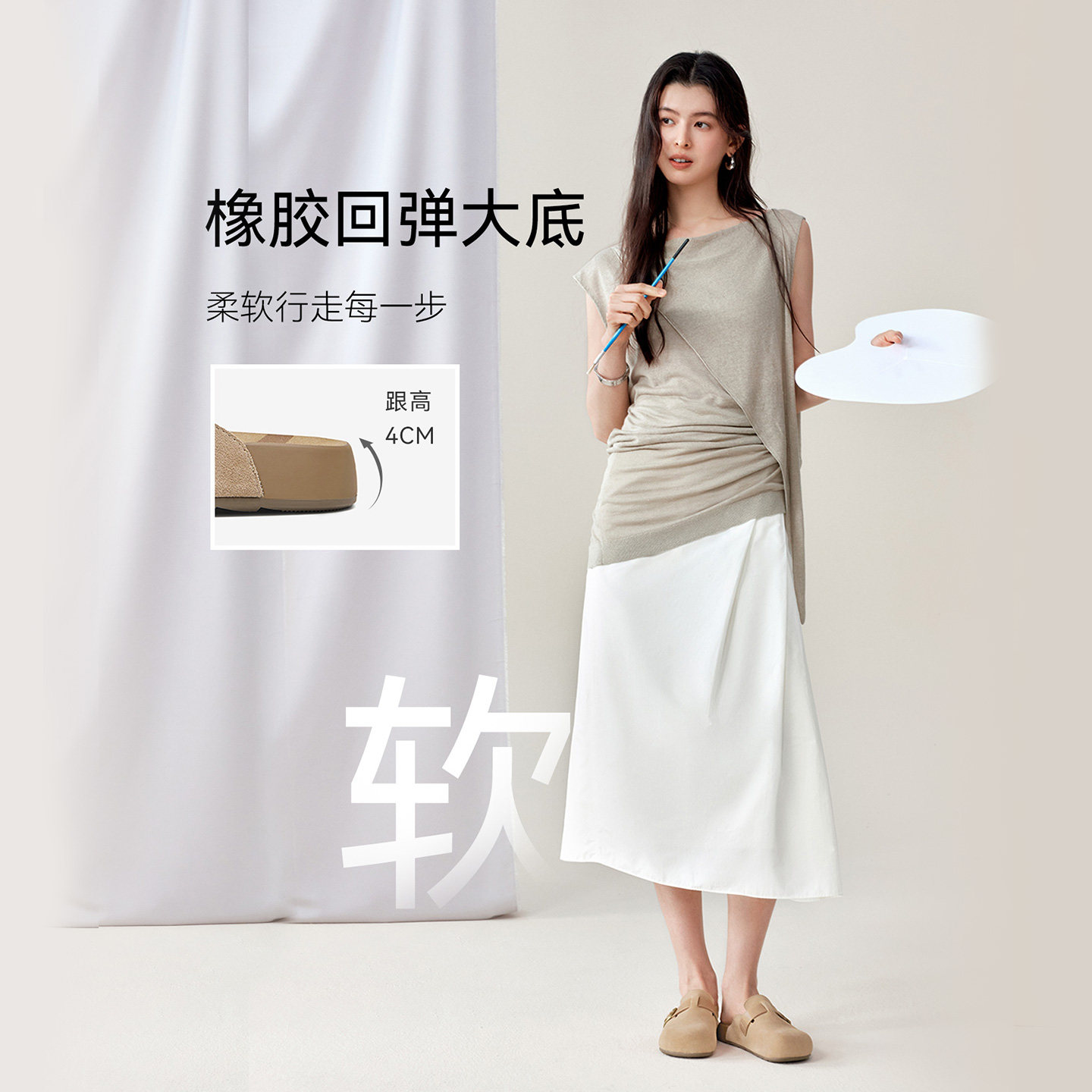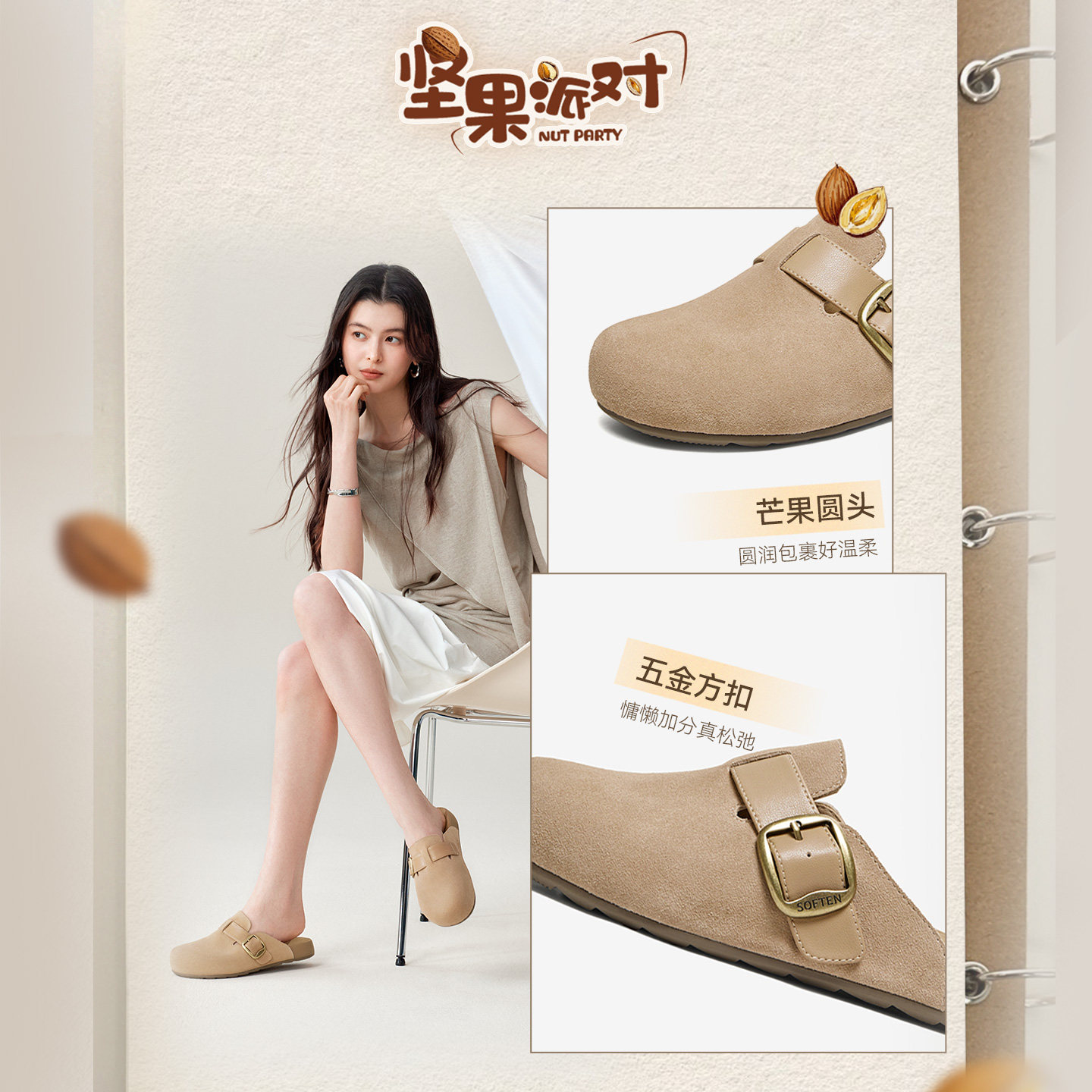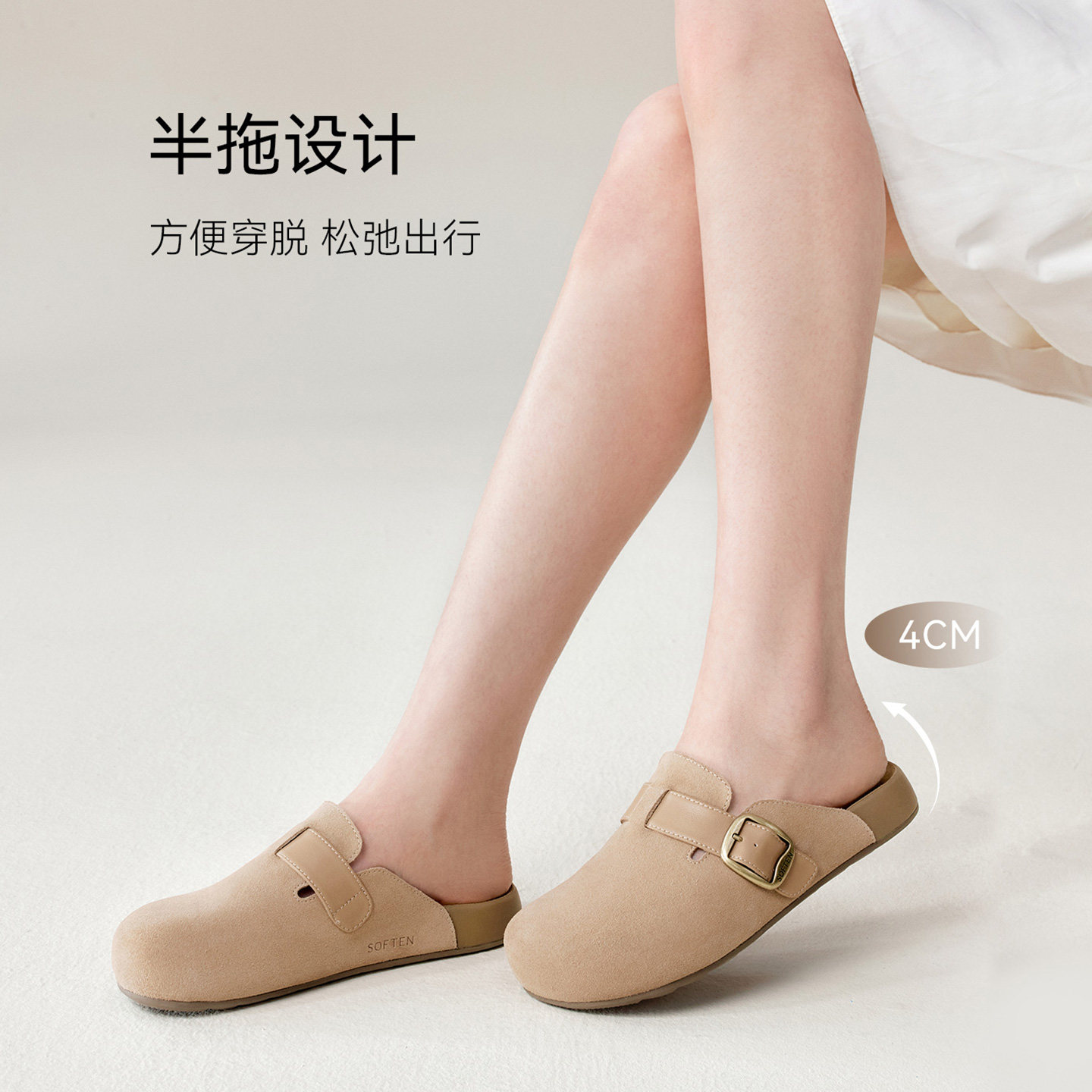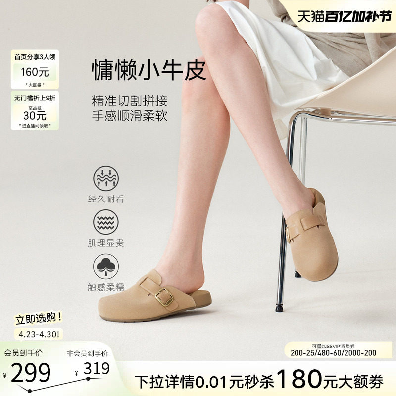 百思图2026夏季新款厚底勃肯鞋半拖休闲包头外穿女凉拖鞋T6281BH6