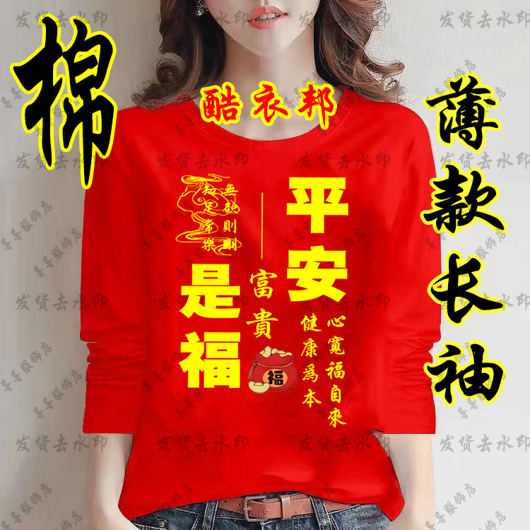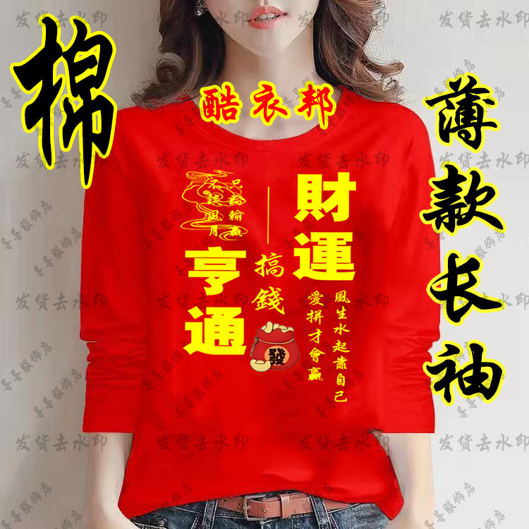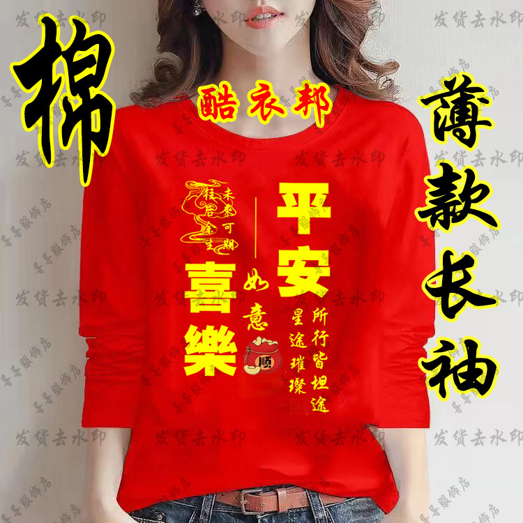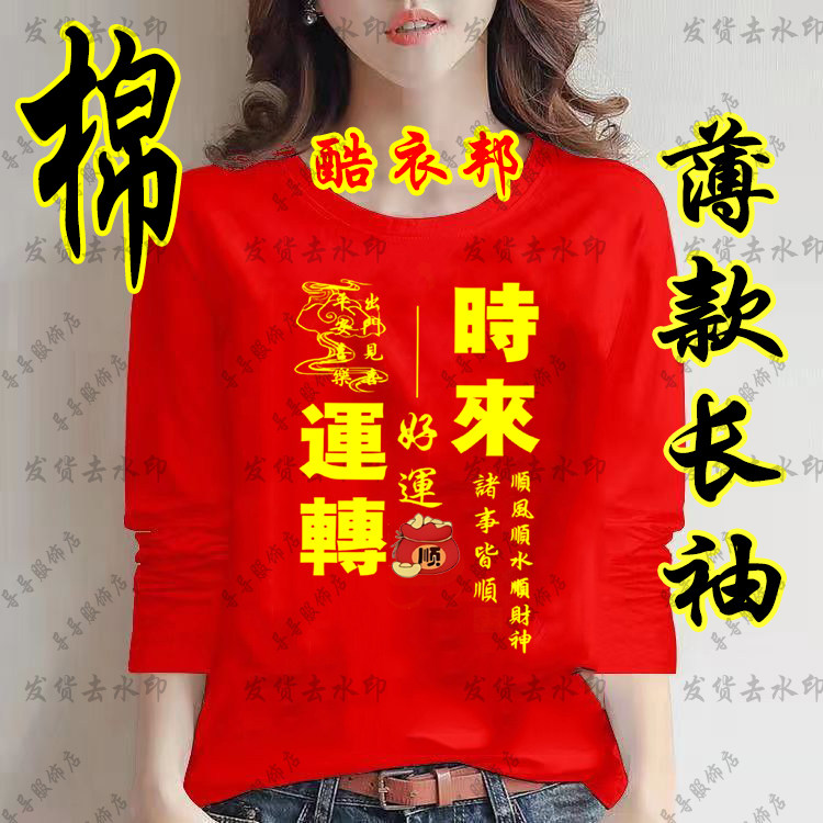 马年本命年八方来财红色长袖T恤薄款春秋季男女青少年打底衫衣服