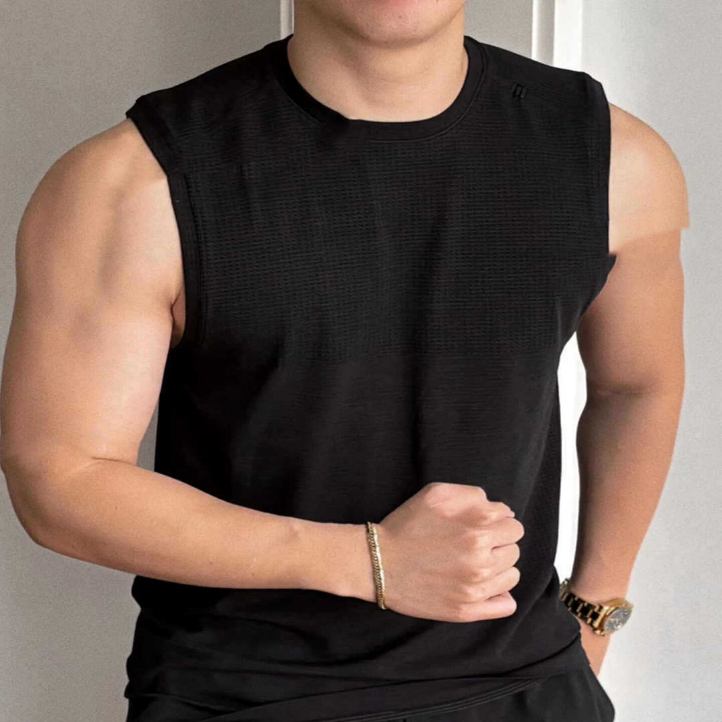 夏季运动健身美式显肌肉训练冰感速干无袖背心男修身透气吸汗T恤