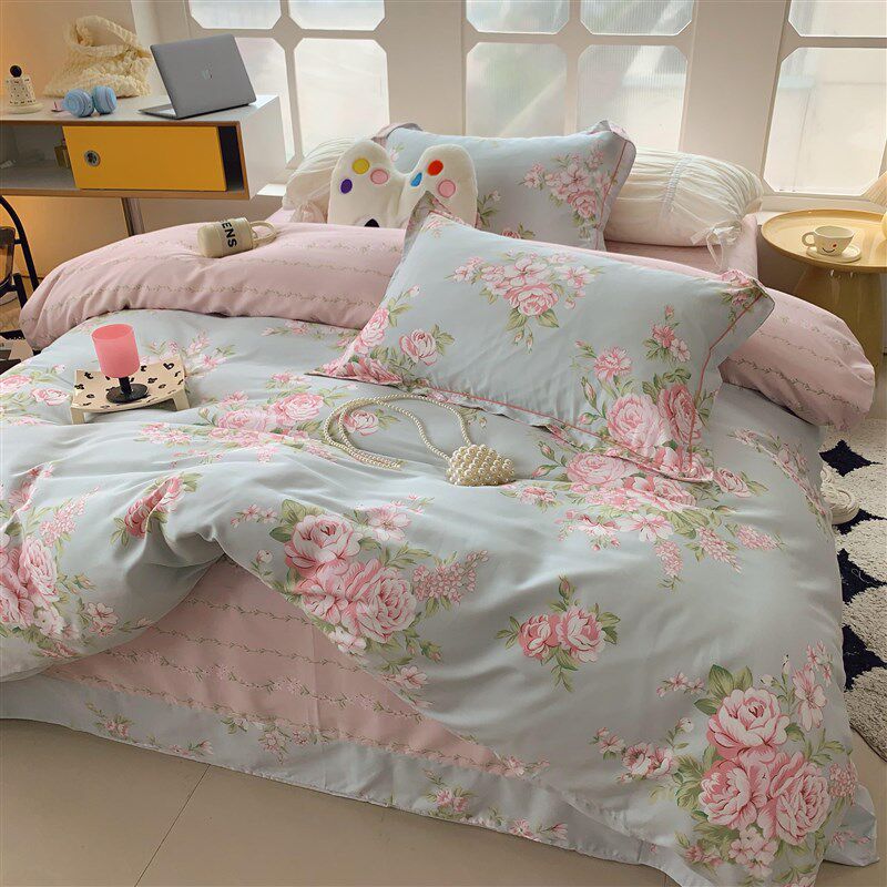 四季款床上四件套纯棉全棉欧式田园风大花宿舍三件套薄款床单被套