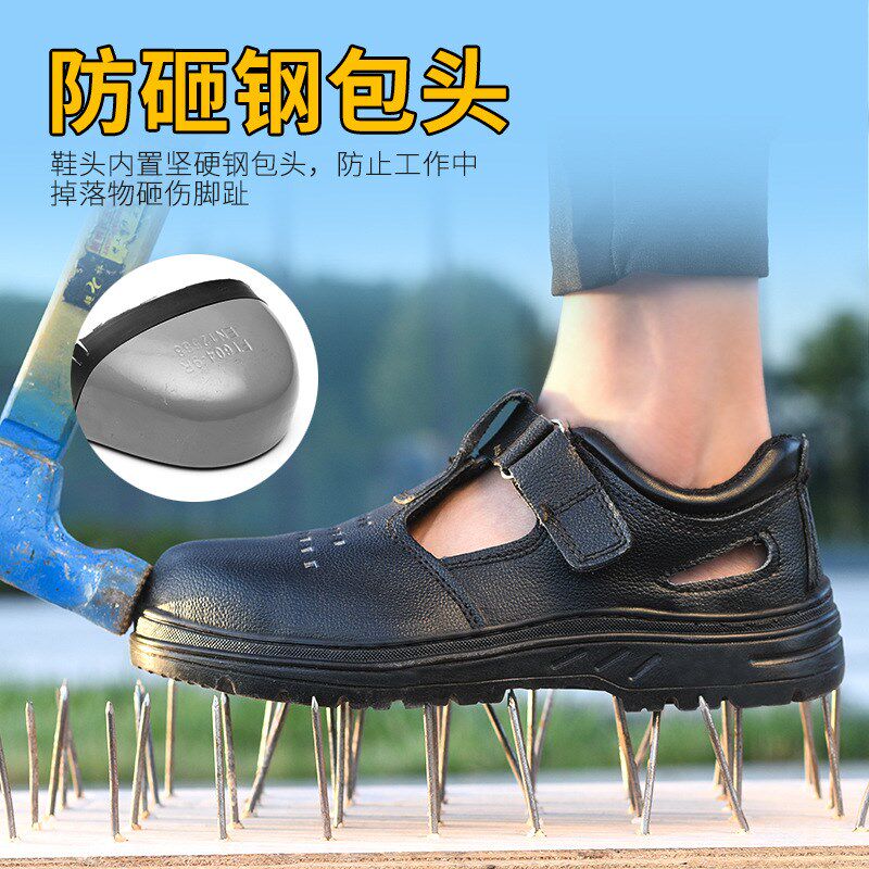 夏季刚包头劳保凉鞋男超轻便工作防砸网面透气防臭工地防扎钉男鞋