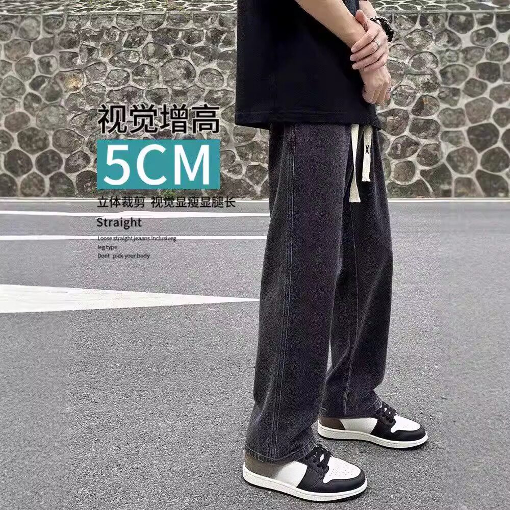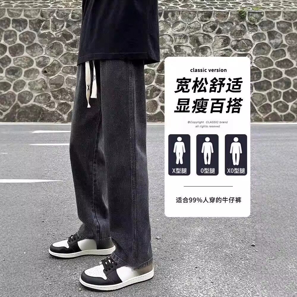 宽松直筒牛仔裤男款2026新款黑灰色复古男款春夏季抽绳美式休闲裤