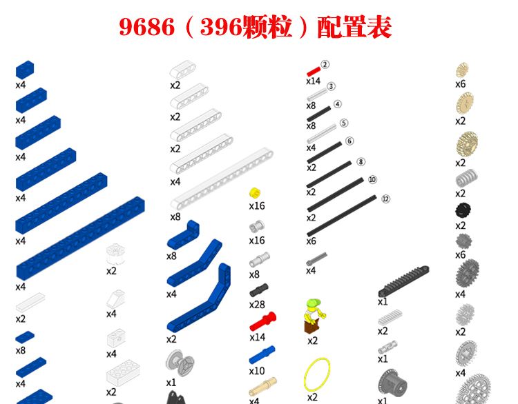 兼容乐高9686教具套装动力机械小颗粒科技件积木配件齿轮车轮零件