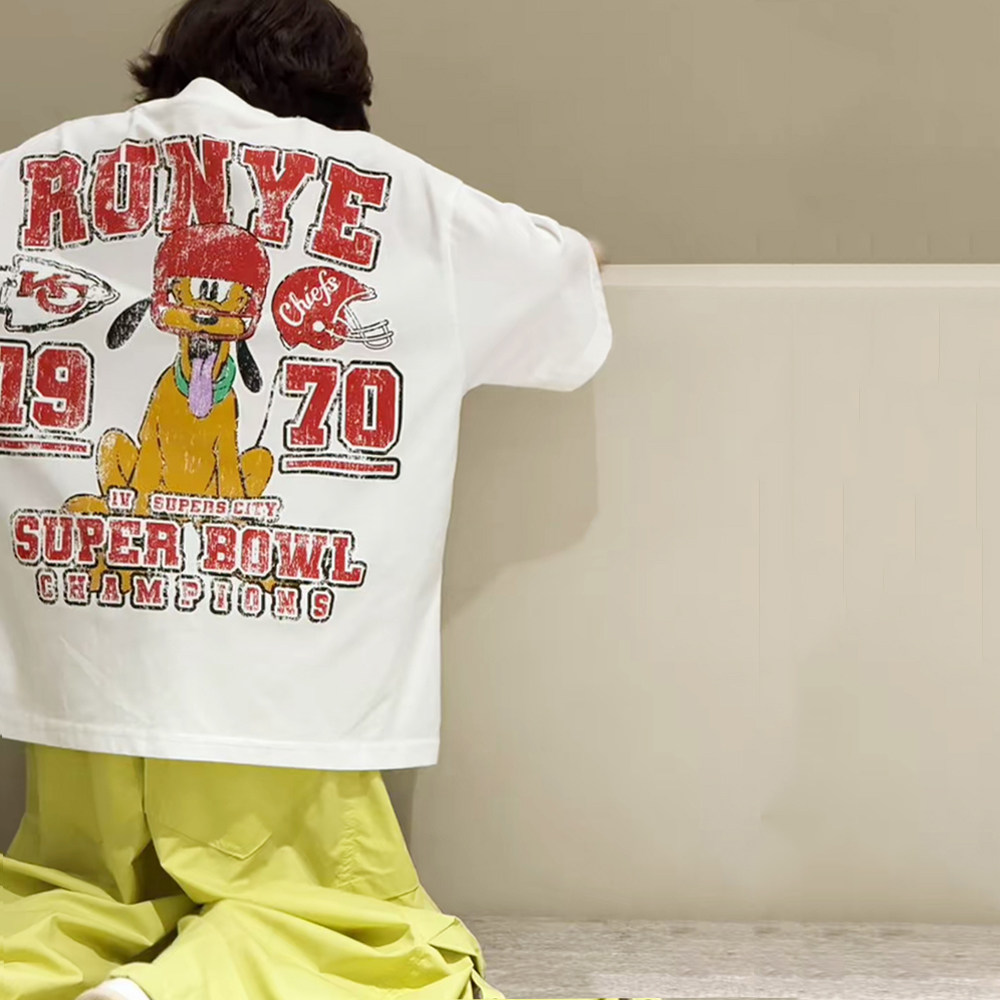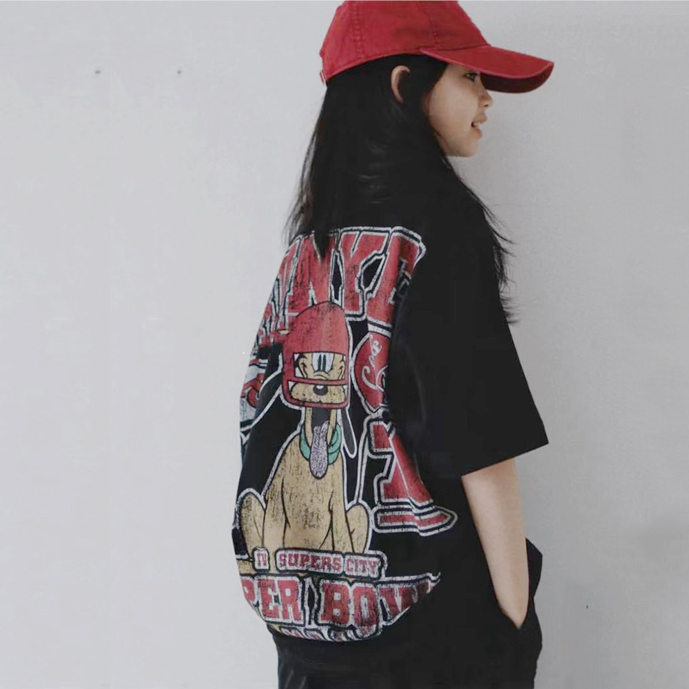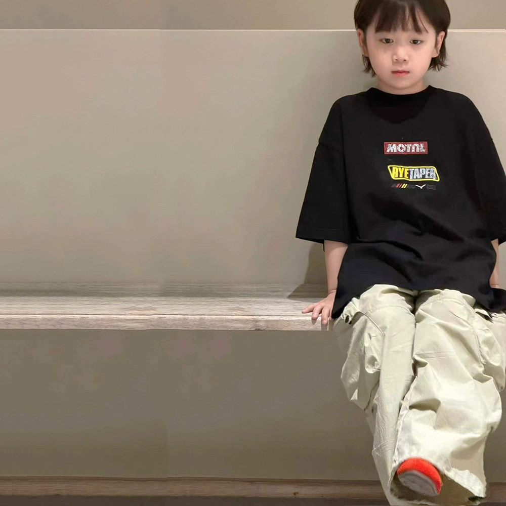 夏季青少年男女童潮牌卡通印花宽松大版短袖T恤纯棉百搭休闲上衣