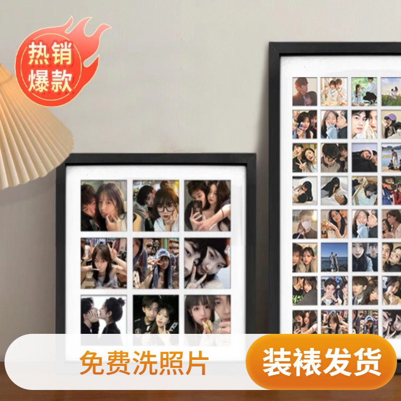 九宫格实木相框摆台洗照片定制diy拼图情侣拍立得打印纪念册挂墙
