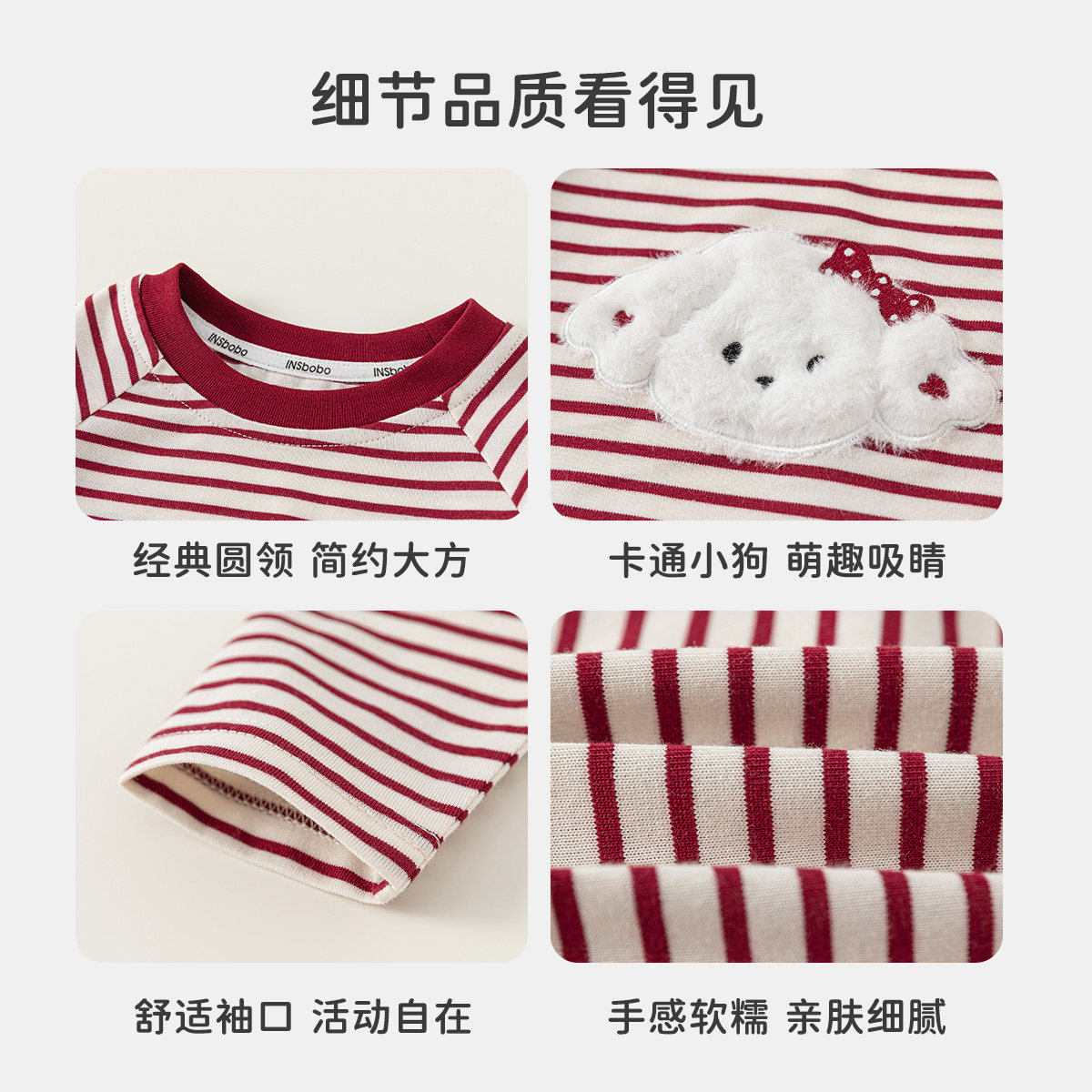 INSbobo女童长袖t恤2026春季新款儿童上衣小女孩红色条纹t恤春秋
