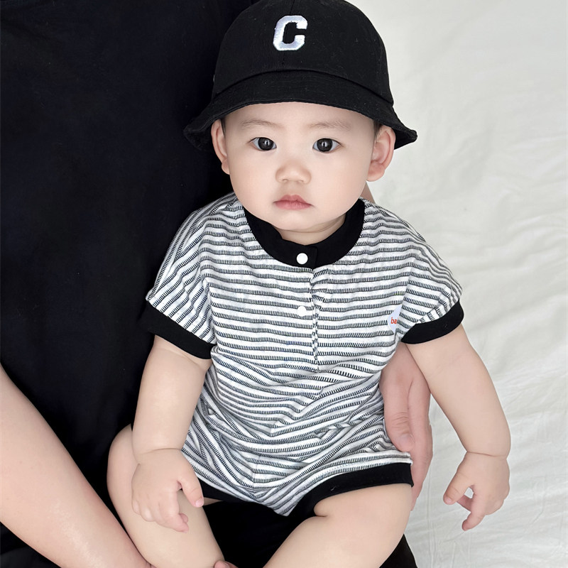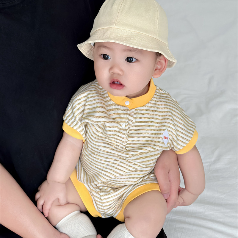 宝宝套装夏季男小童薄款条纹短袖短裤两件套女童夏装T恤运动套装