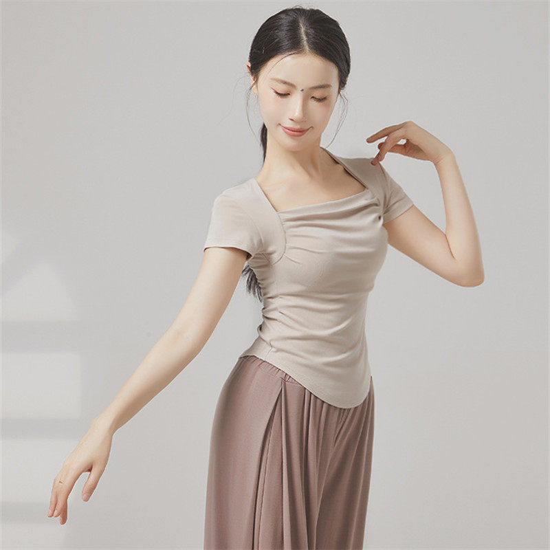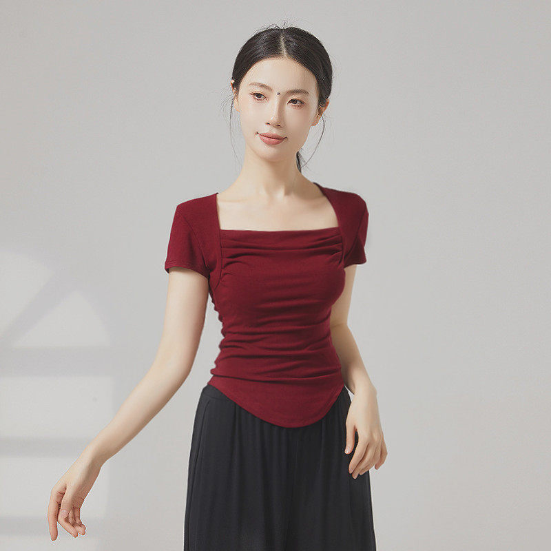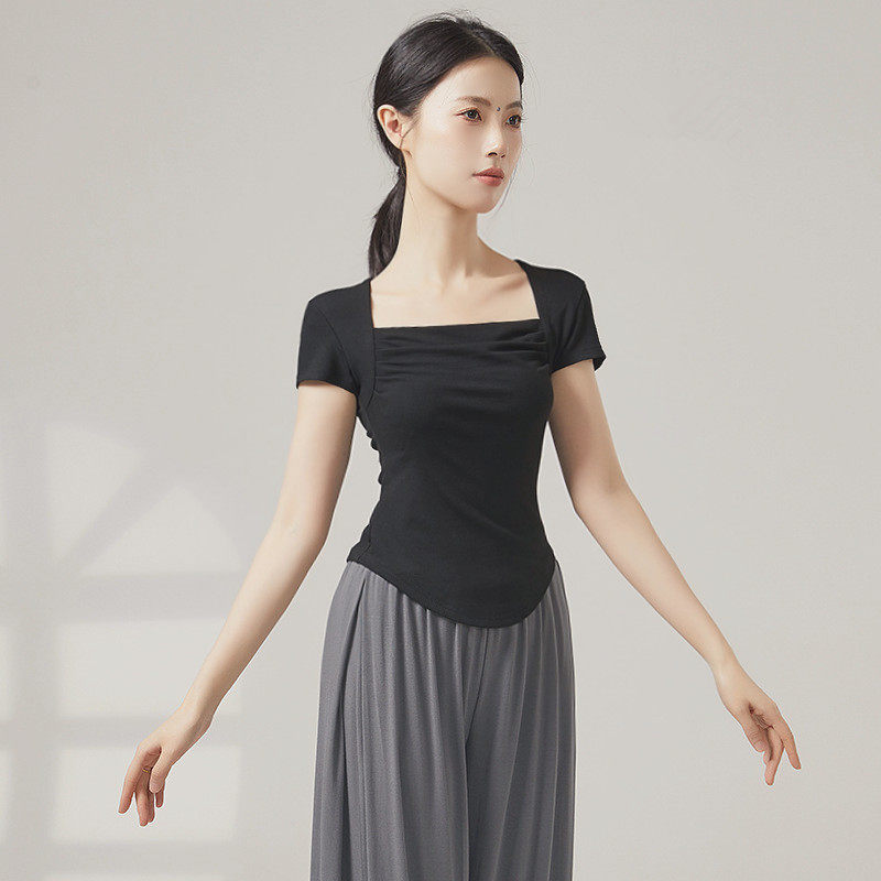 夏季方领短袖形体服现代舞服中国舞古典舞蹈服练功服上衣女款新款