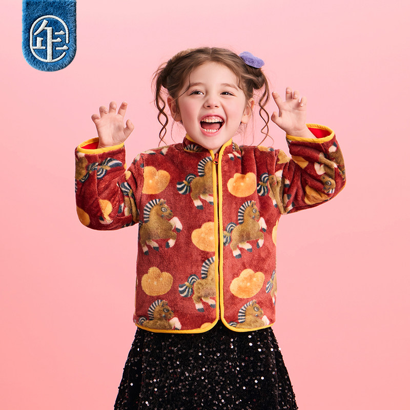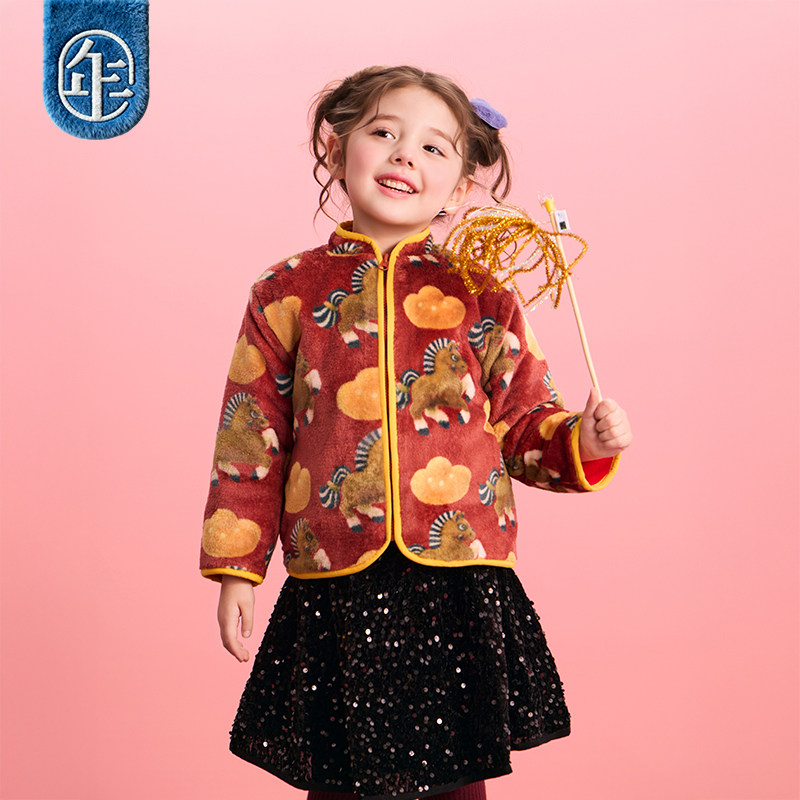 年衣童装儿童加绒唐装冬季新品男女童中式国风上衣毛绒外套拜年服