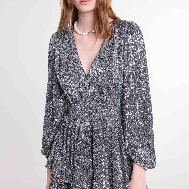 311线报网描述:性感V领长袖款式 时尚银色亮片装饰