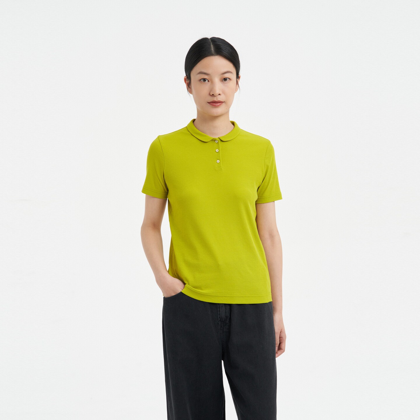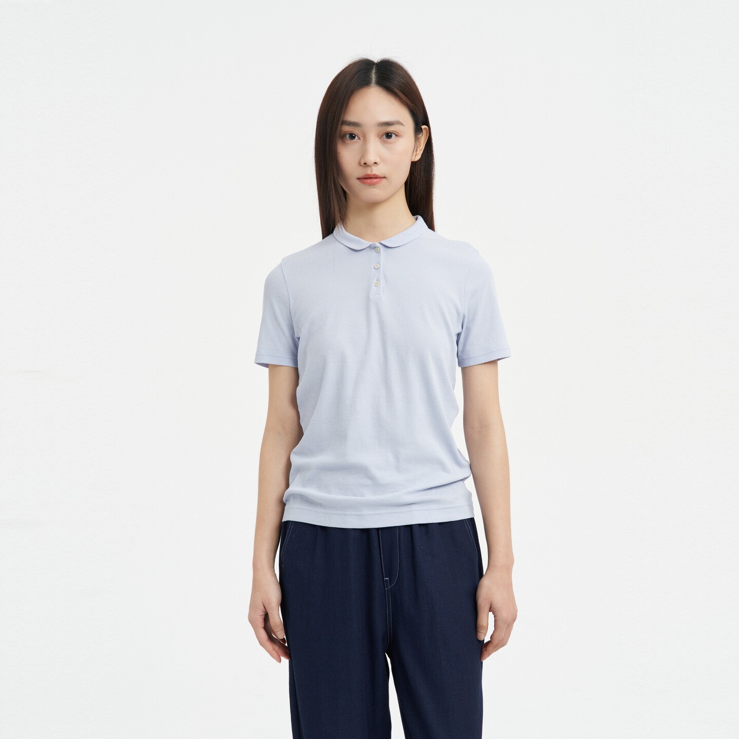 klee klee2026早春新款女装环保棉罗纹POLO领短袖T恤K0261TS05