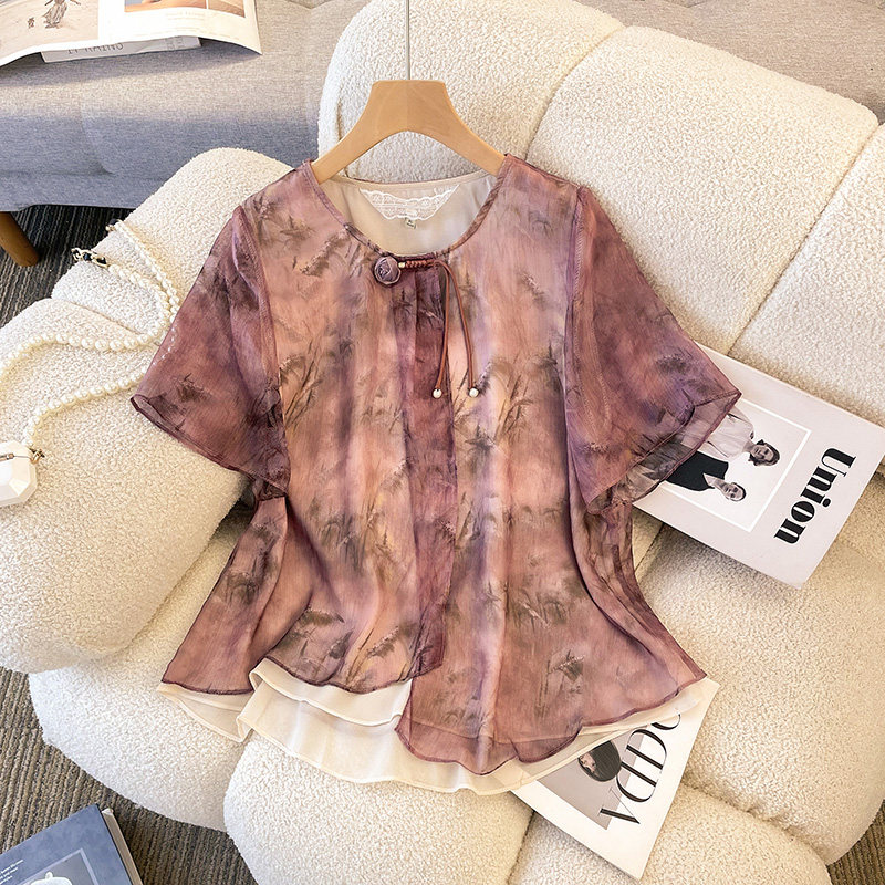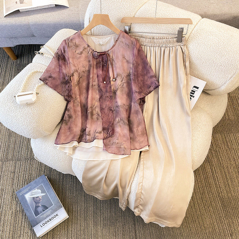 妈妈夏装2026新款中老年大码中式盘扣雪纺短袖套装中年两件套女装
