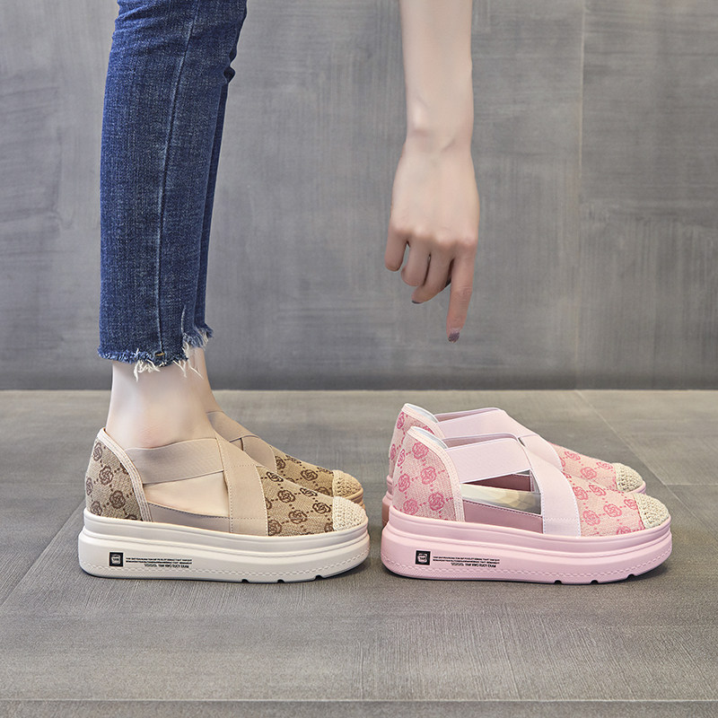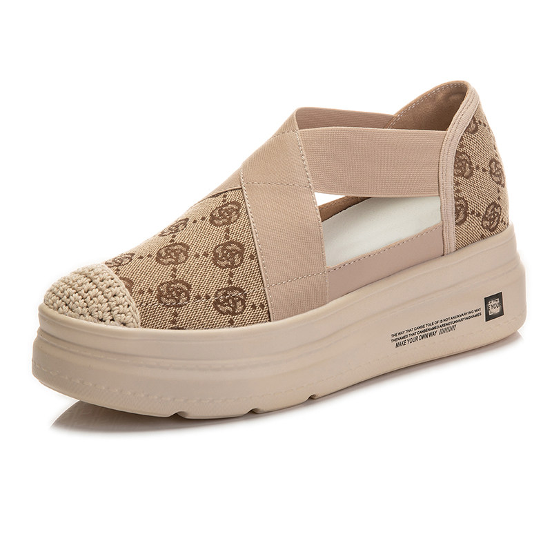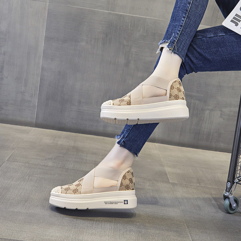 内增高女鞋2024新款小香风厚底渔夫鞋夏天一脚蹬鞋子松糕跟休闲鞋