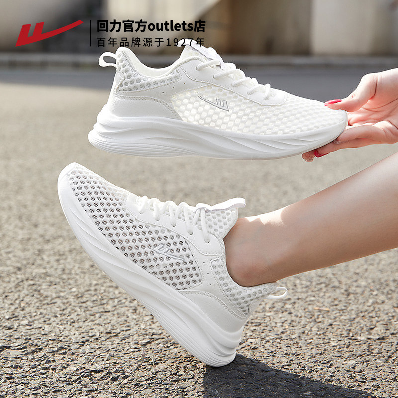 回力女鞋夏季鞋子女款休闲夏天透气薄款女士白色跑步运动鞋网鞋女