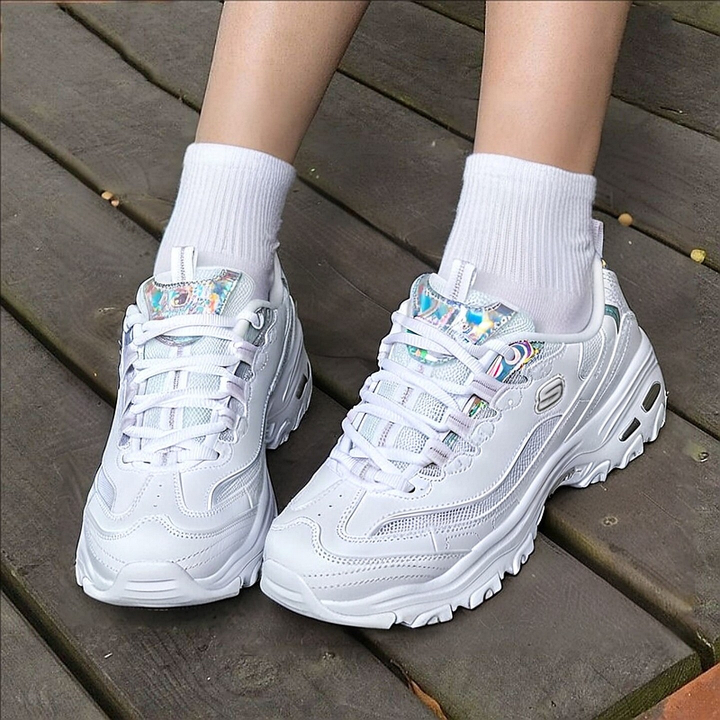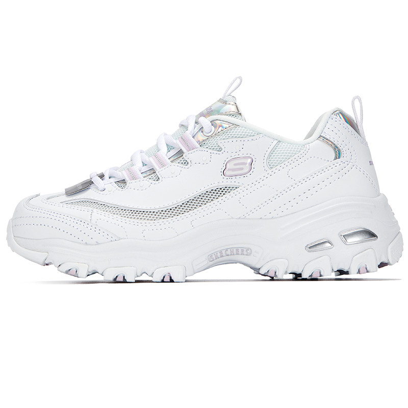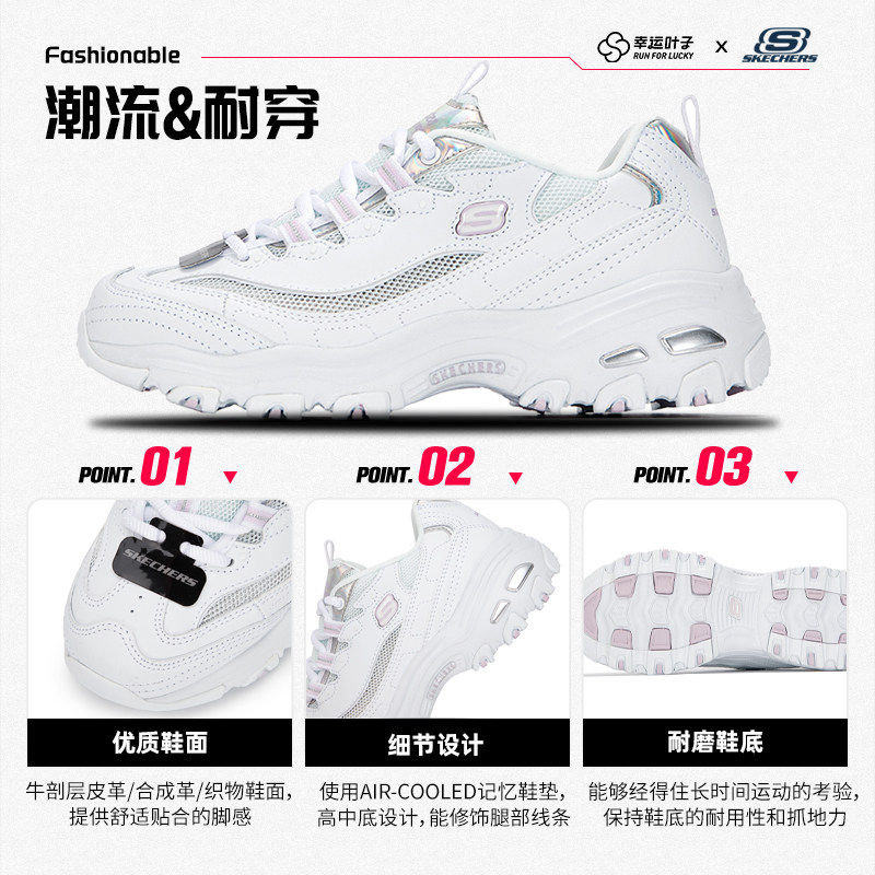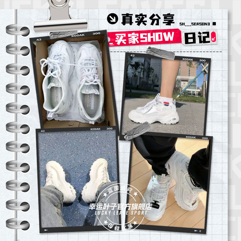 斯凯奇女鞋春季26新款网面透气熊猫鞋厚底老爹鞋运动休闲鞋小白鞋