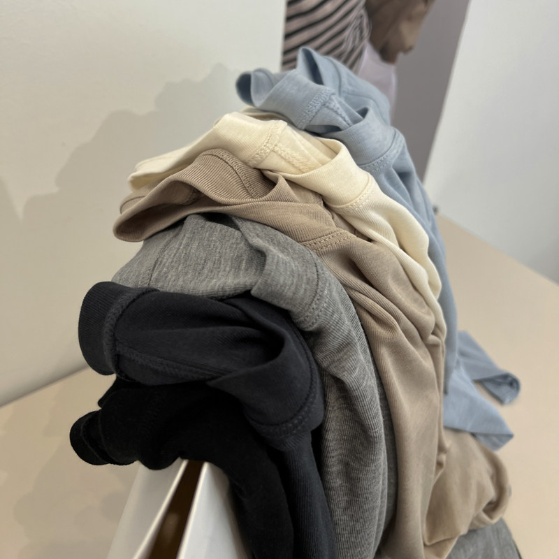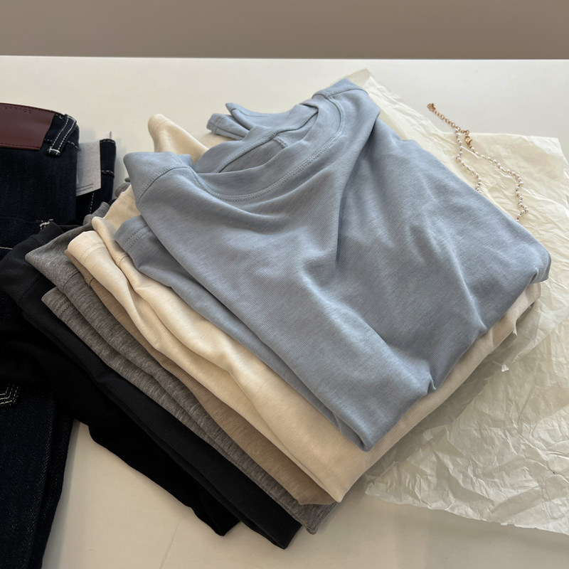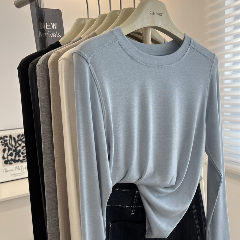 韩版纯色简约圆领修身长袖T恤女内搭打底衫上衣薄款2024秋季新款