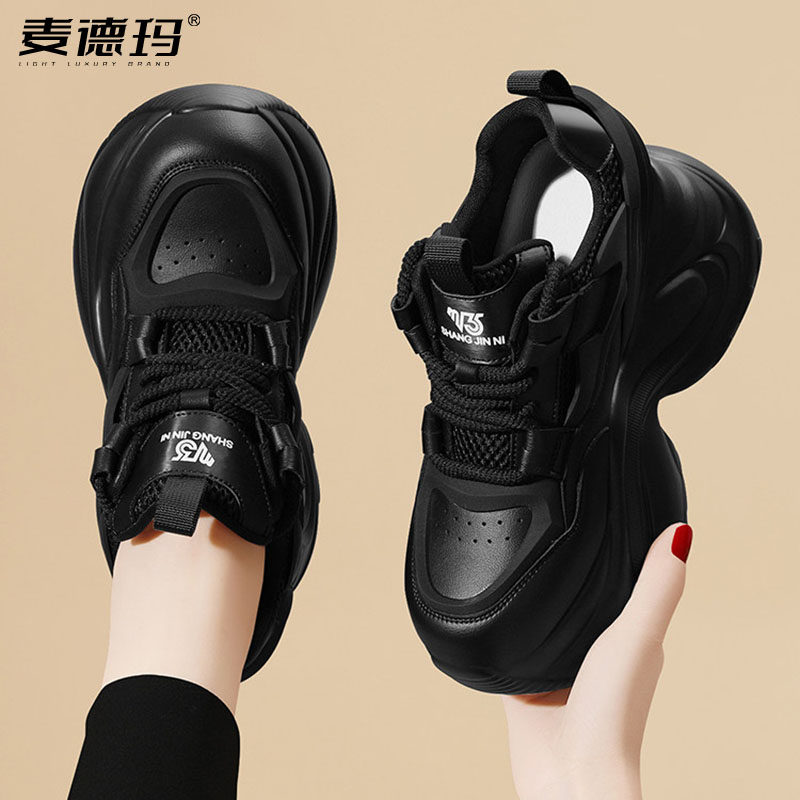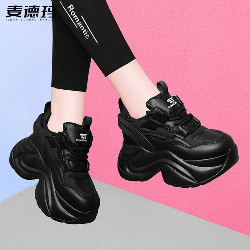 超厚底增高老爹鞋女款春秋季2026新款显脚小松糕黑色休闲运动旅游