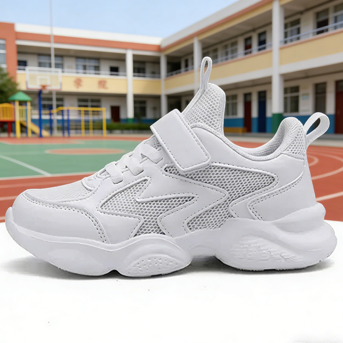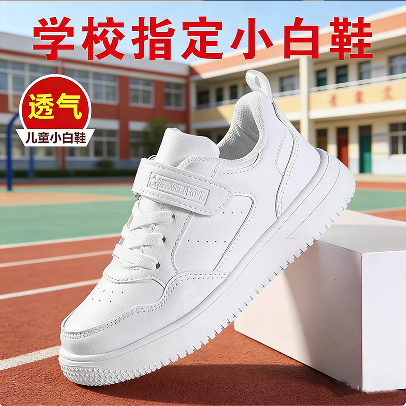 女童小白鞋男童2026春秋网面透气中小童软底校园儿童白色运动鞋子