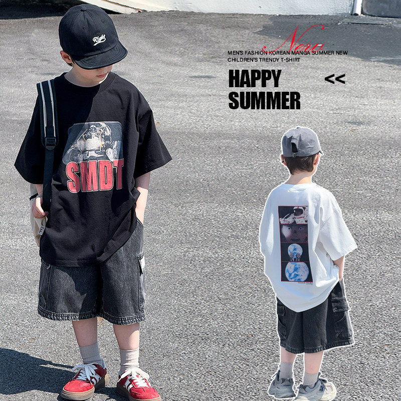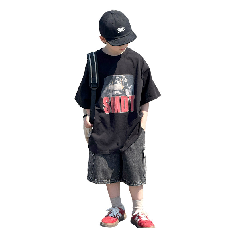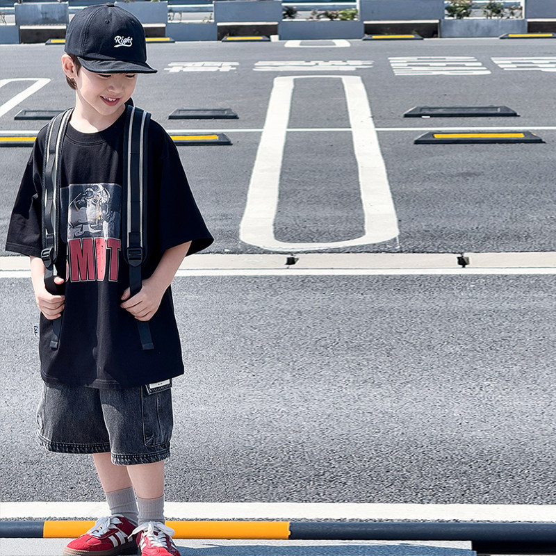 男童夏款套装2026新款儿童韩版半袖T恤中大童男孩短袖两件套痞帅