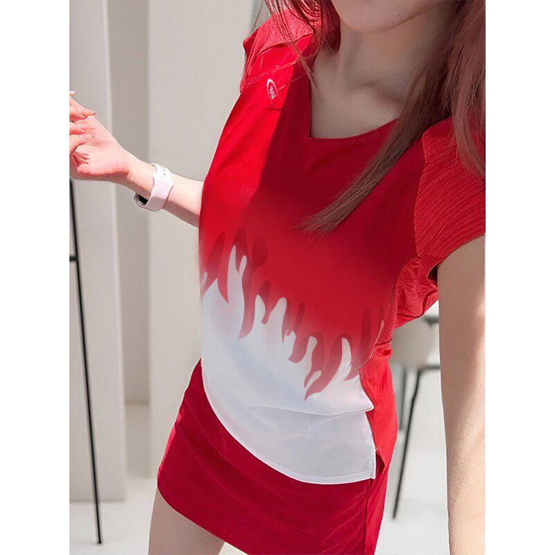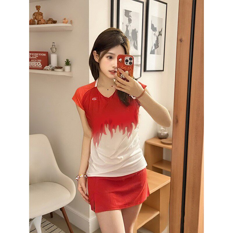 LDAB红色绝美羽毛球服套装女2026春夏新款高颜值运动速干短袖裙子