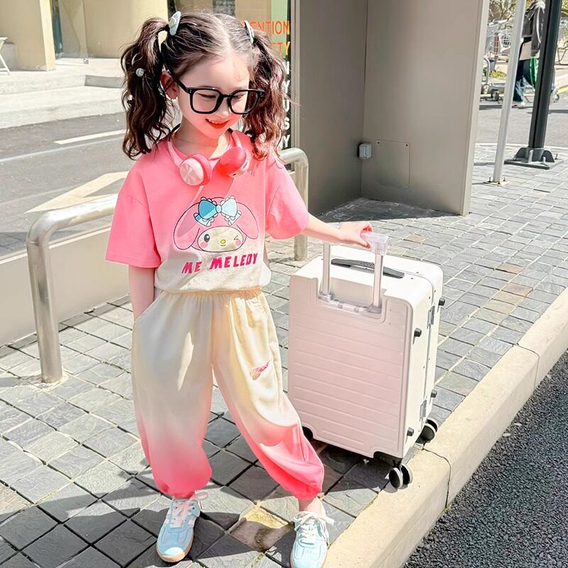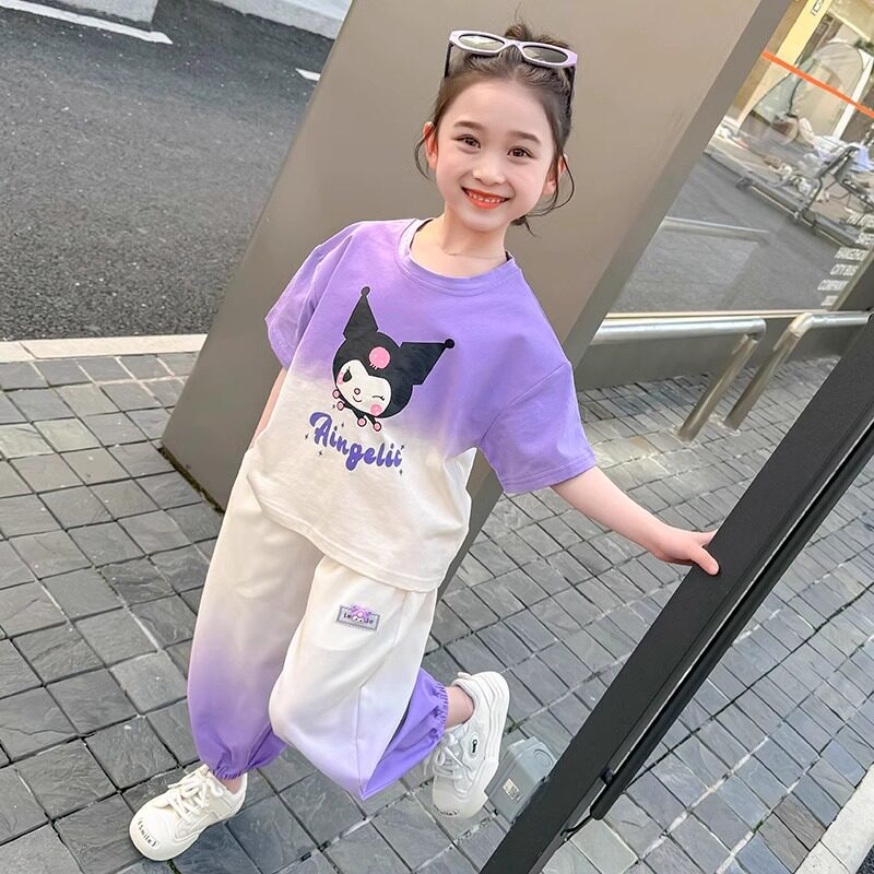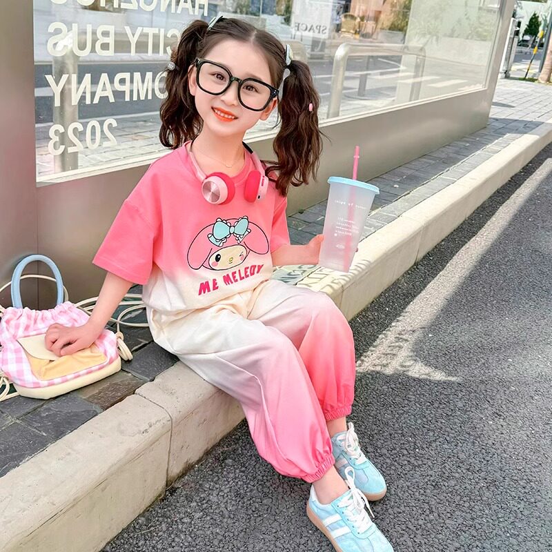 女童套装短袖长裤夏季渐变色2026新款儿童时髦宝宝休闲运动两件套
