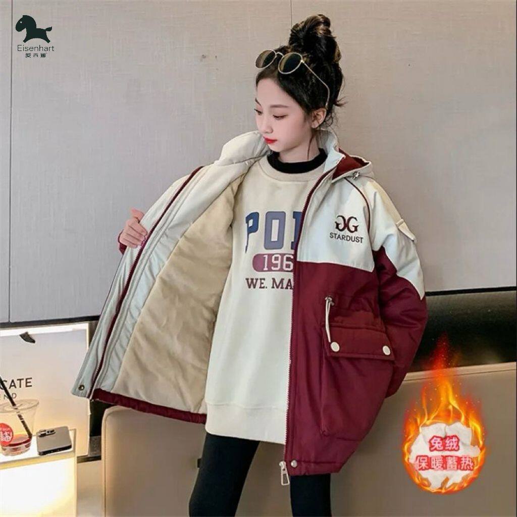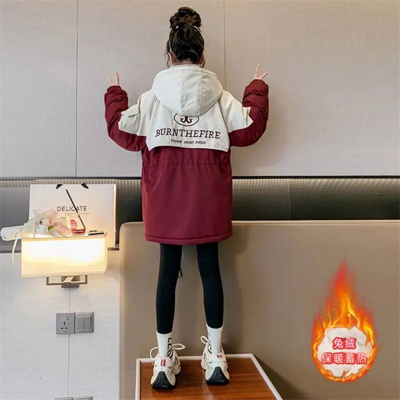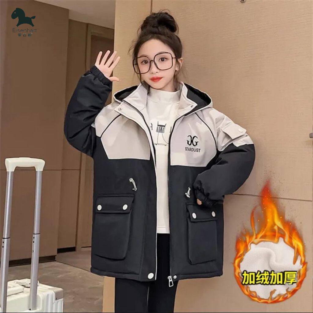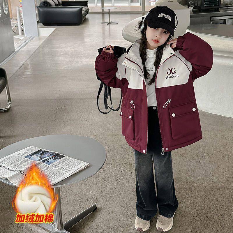 女童棉服外套2025新款冬装加绒加厚棉衣中长款休闲派克服