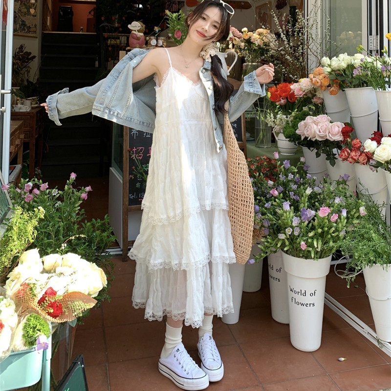 150小个子法式白色吊带连衣裙女春夏2026海边度假气质蛋糕裙XS145