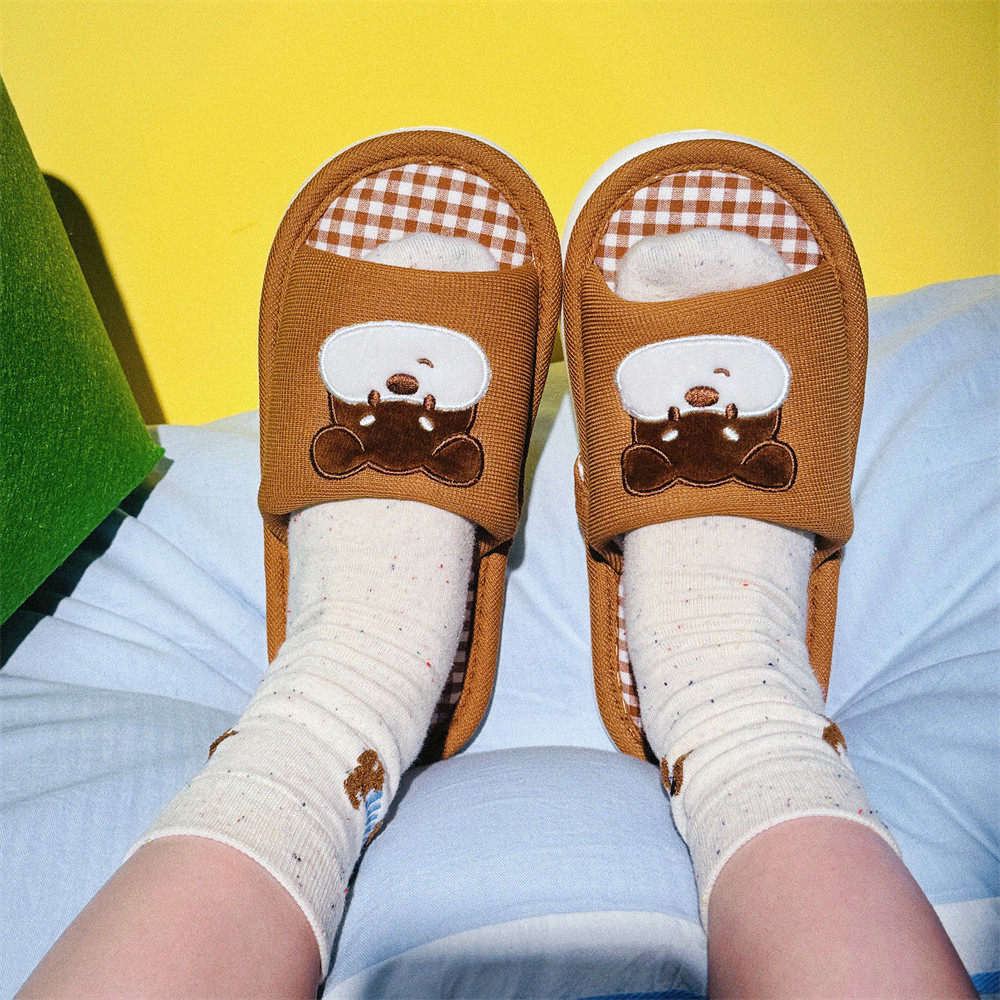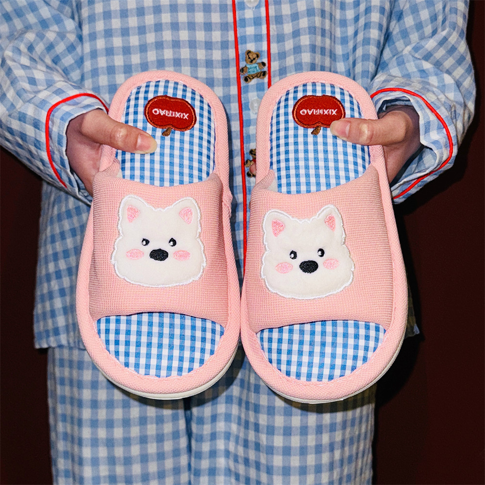 软底防滑ins家用透气百搭地板鞋呆萌狗狗轻便春夏季女士棉麻拖鞋