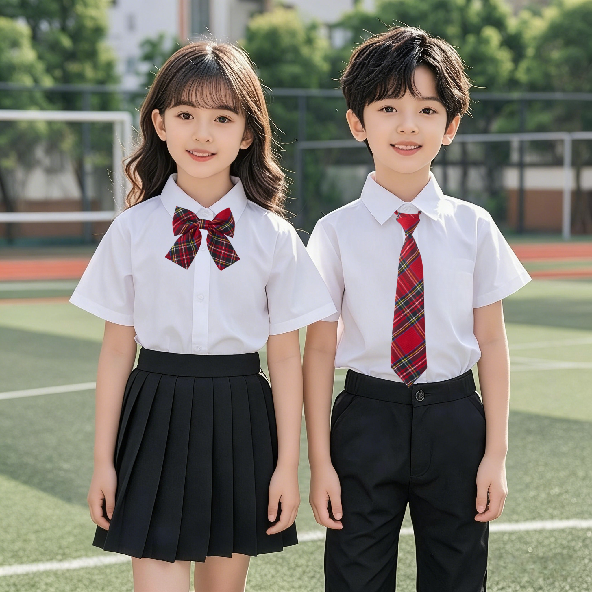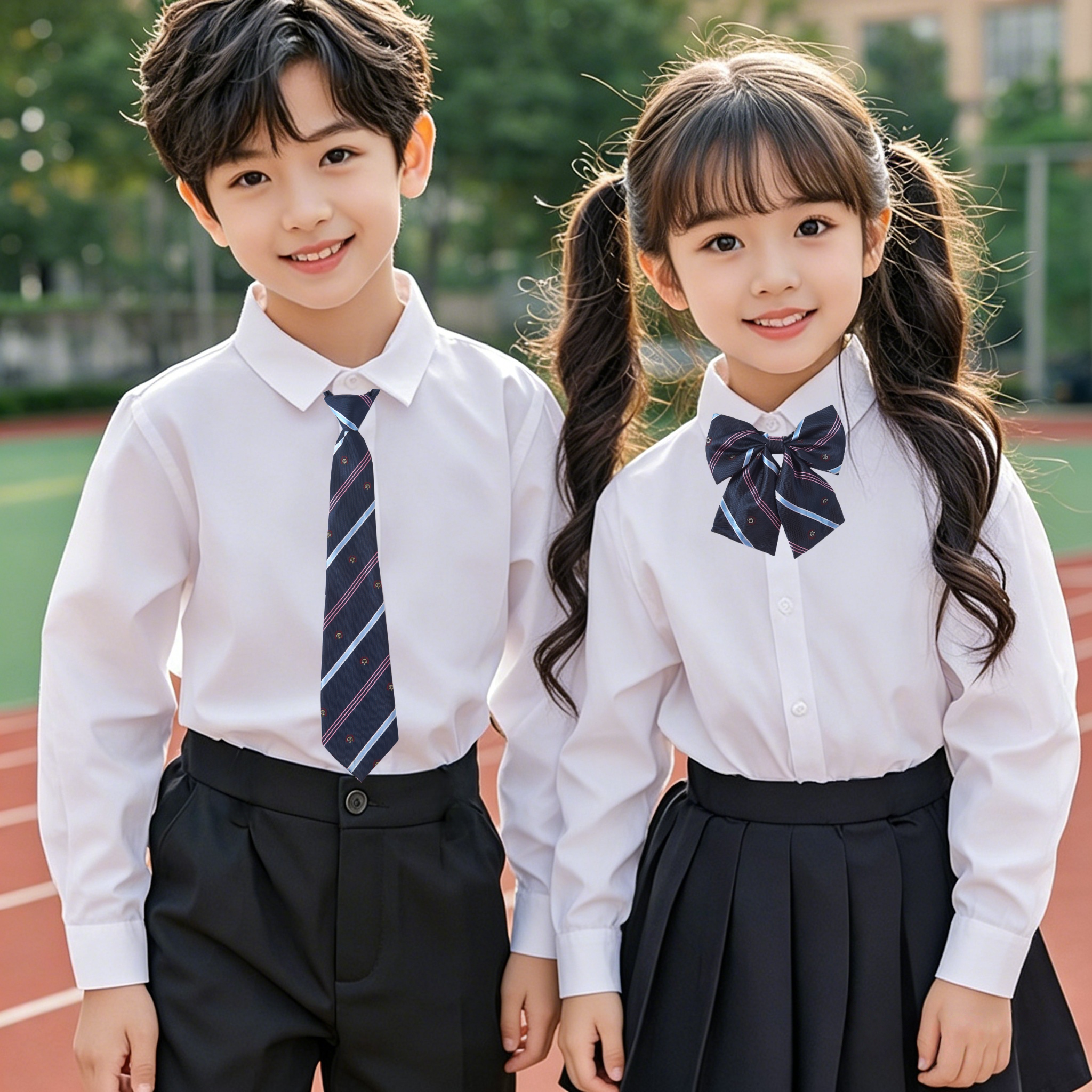 儿童白色衬衫长袖小学生男童表演出服毕业拍照运动会短袖女童衬衣