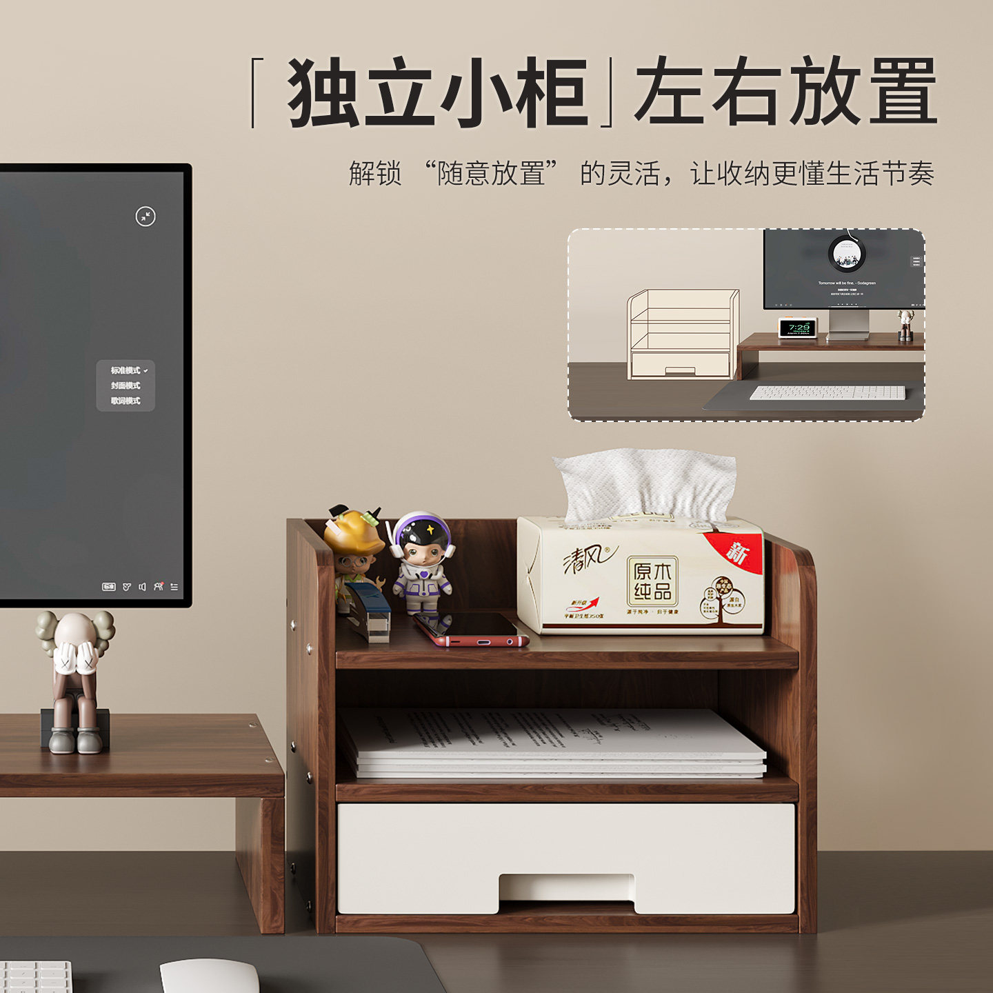 311线报网描述:带独立小柜自带抽屉加厚板材稳固承重