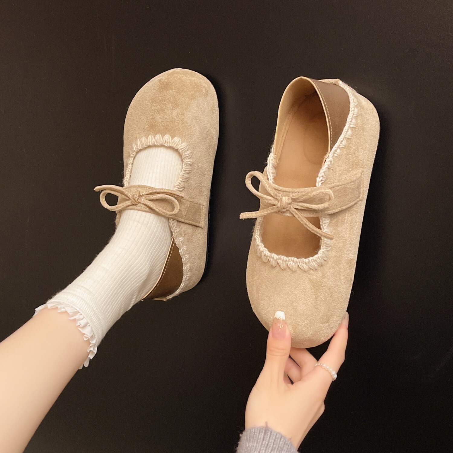 2026春季新款刺绣百搭两穿魔术贴蝴蝶结厚底内增高勃肯鞋包头拖鞋