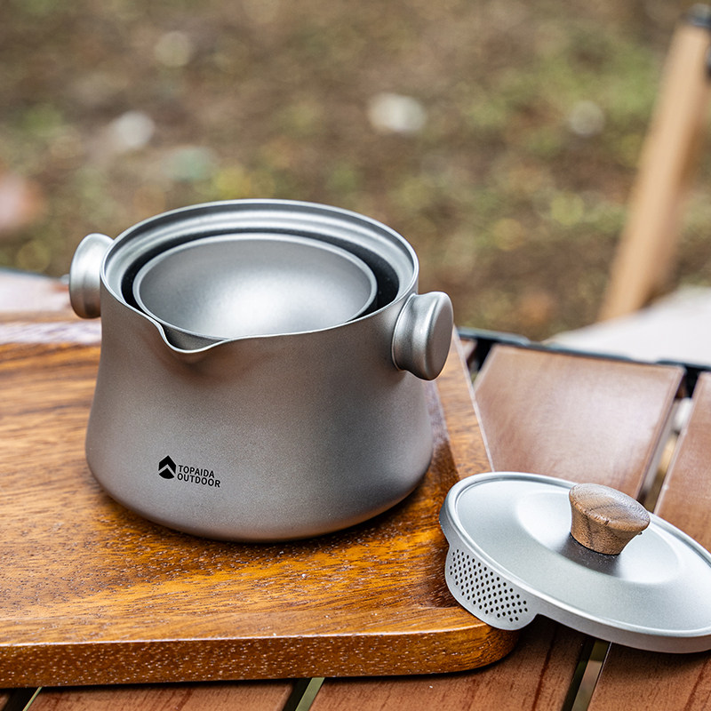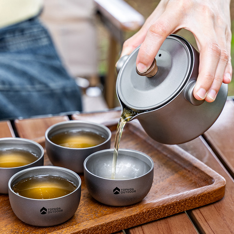 纯钛旅行茶具套装户外露营钛合金便携泡茶器筷客杯双层防烫钛茶具