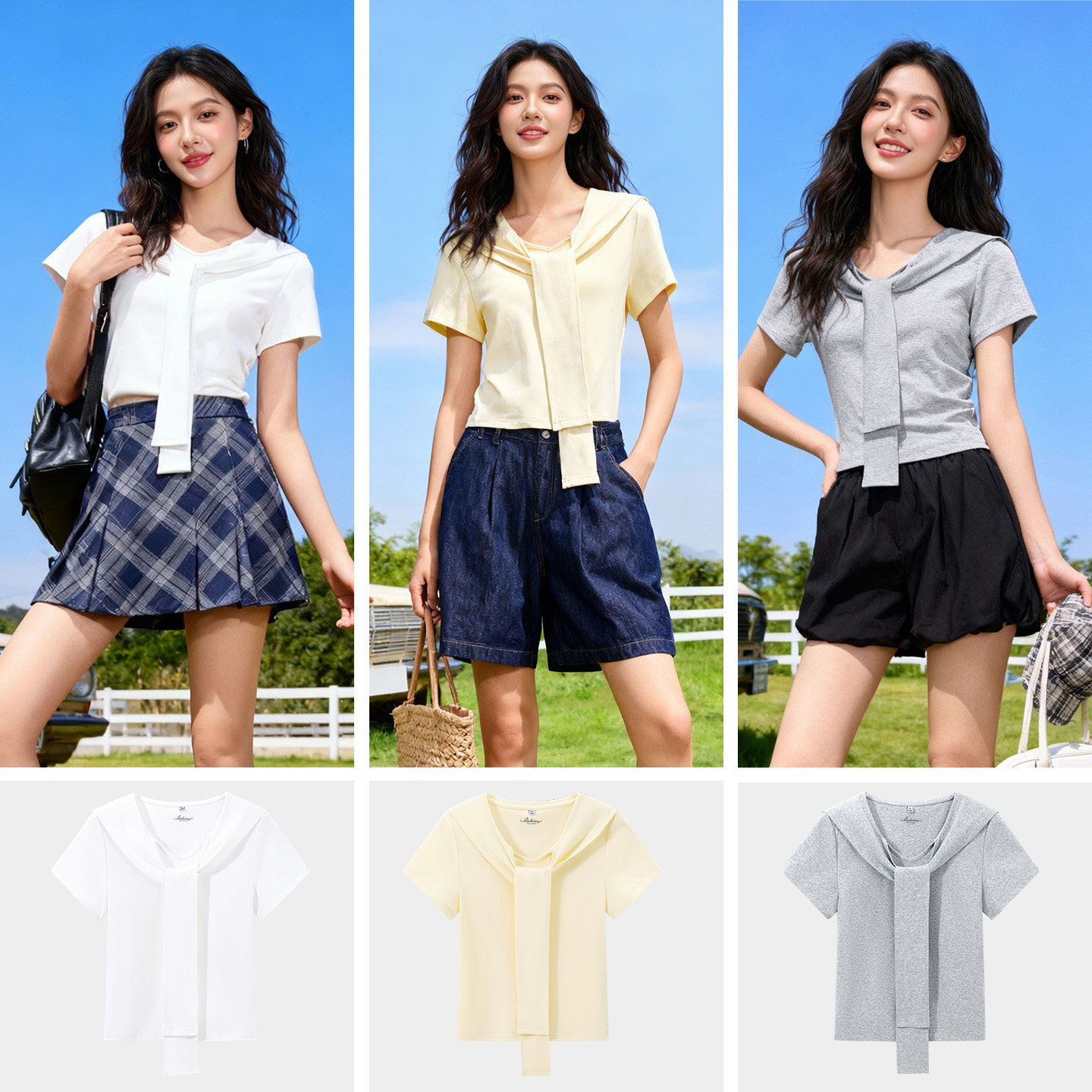 班尼路S&K系列灰色假两件披肩短袖t恤女款2026夏季新款显瘦上衣H