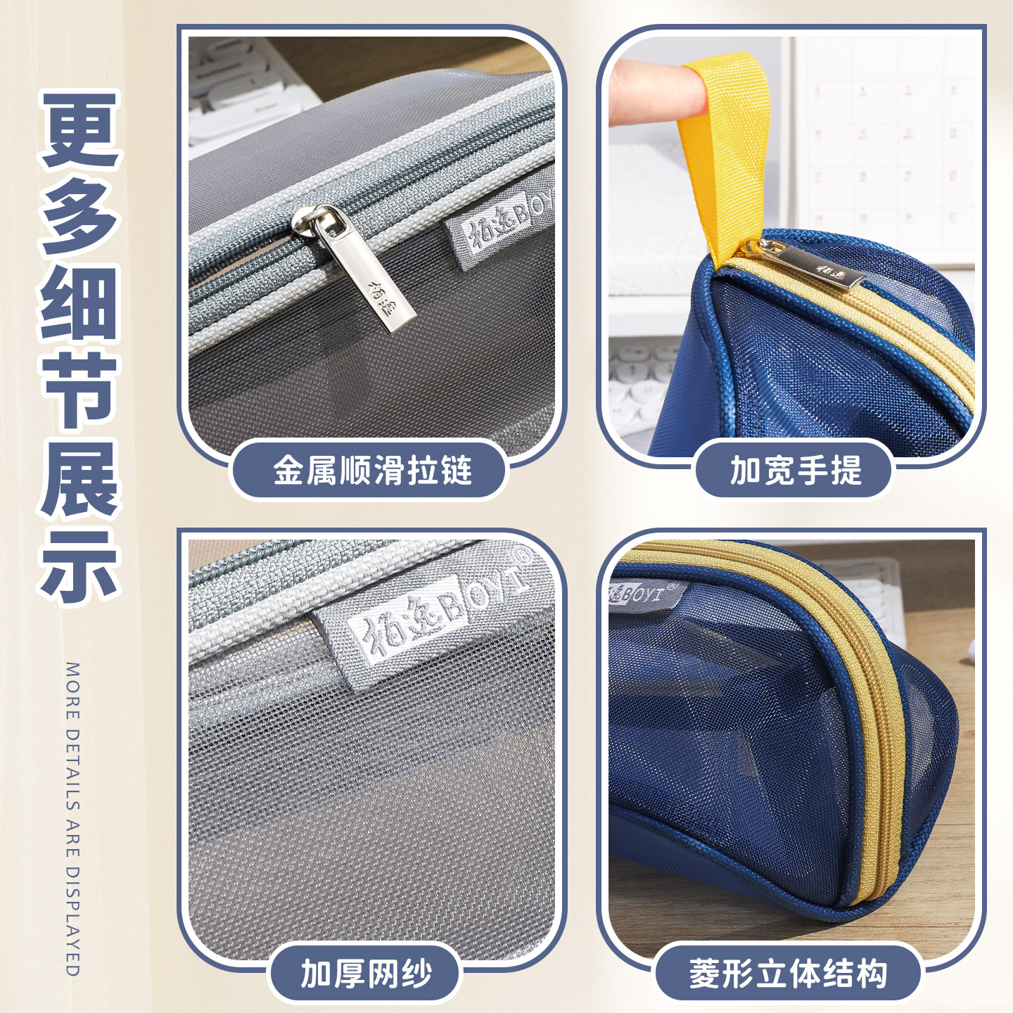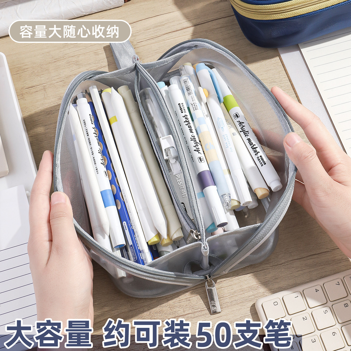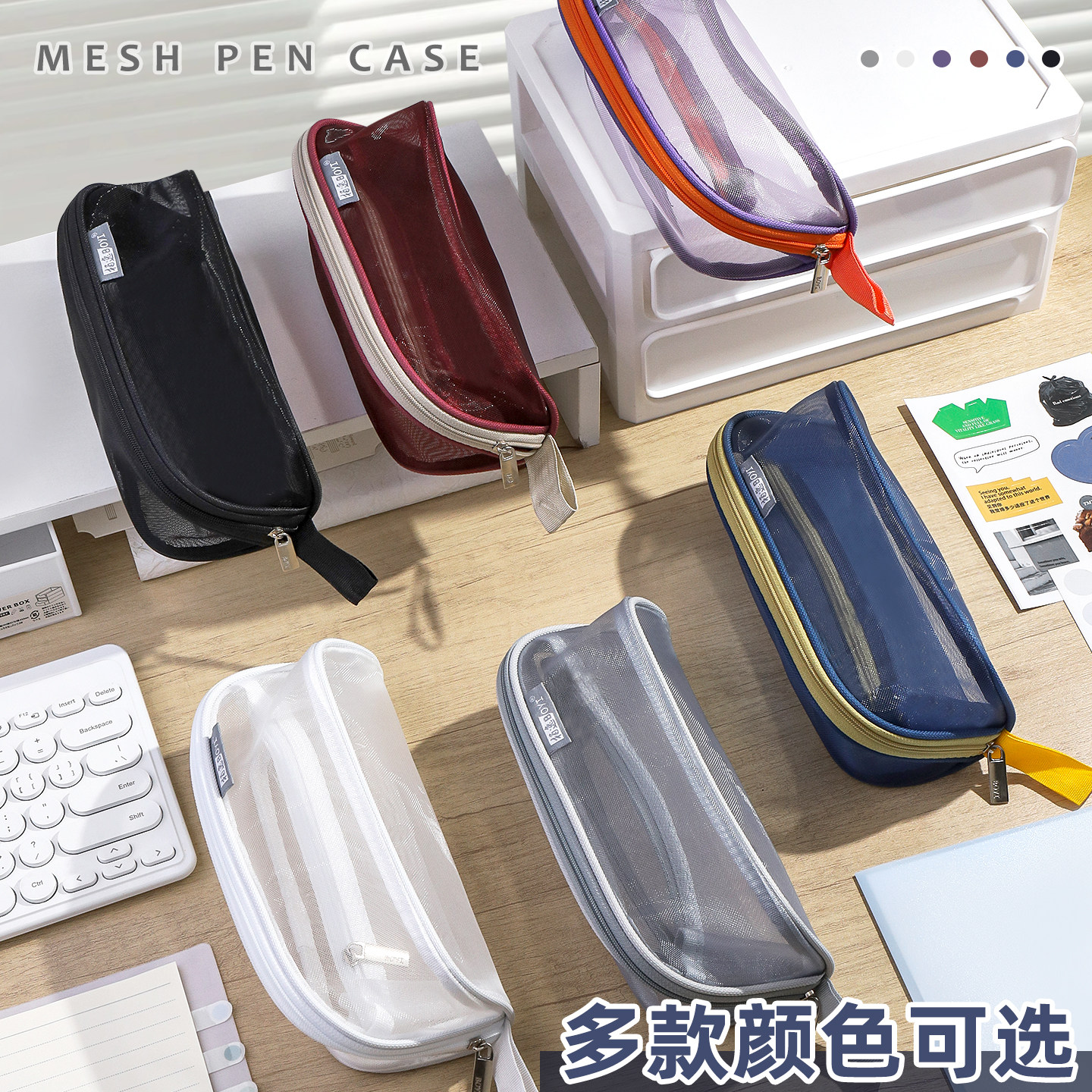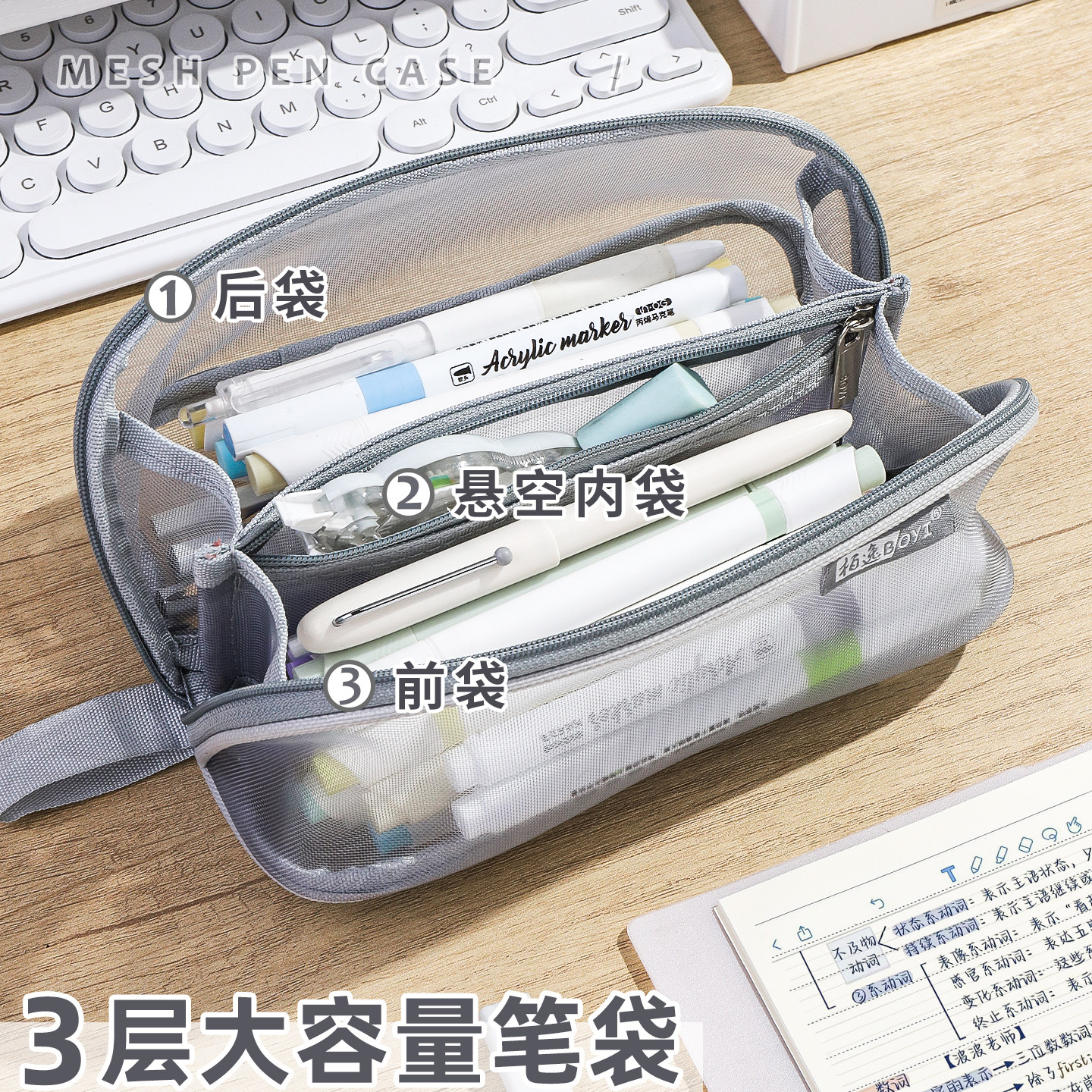 多层网纱透明笔袋考试专用中考高考简约初中大容量女孩文具铅笔盒新款高颜值文具袋网眼文具盒文具收纳袋