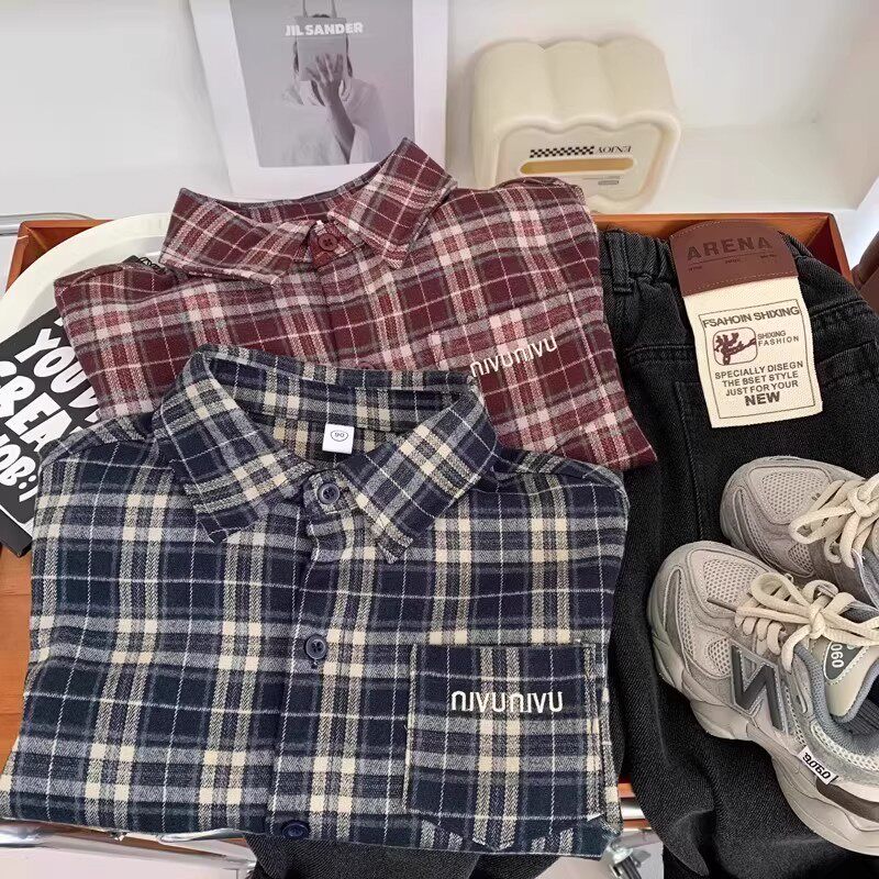 男童春装长袖衬衫2026新款儿童洋气时髦格子薄款衬衣男孩春秋上衣