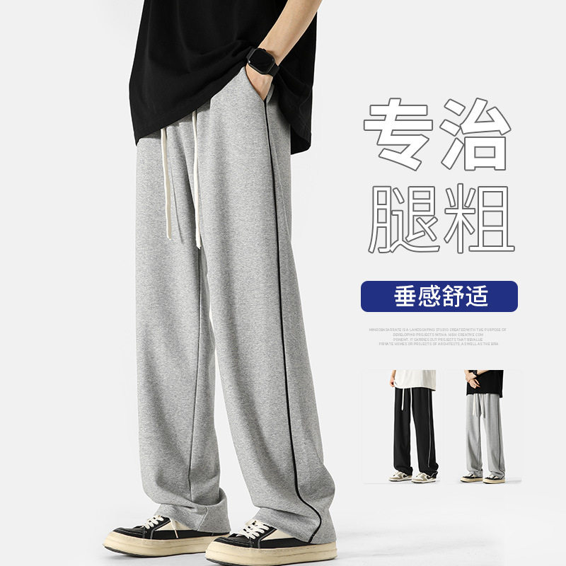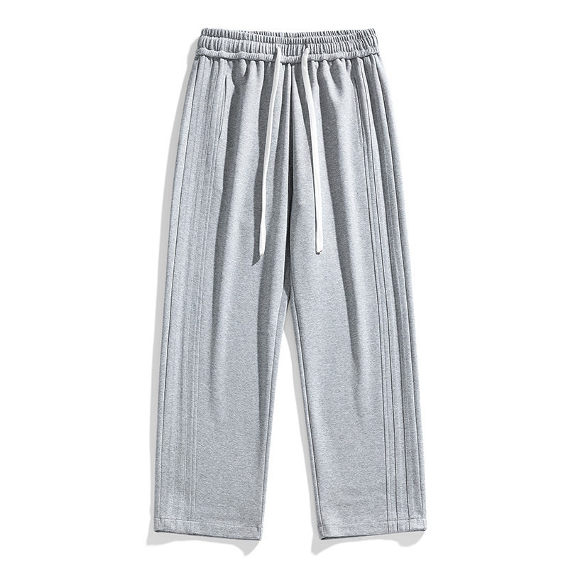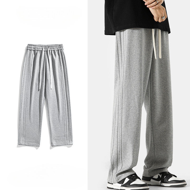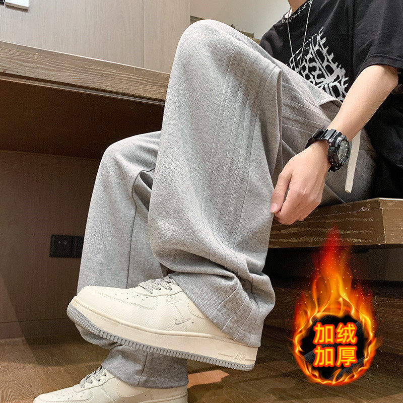 灰色裤子男生秋冬加绒加厚宽松直筒休闲长裤青少年阔腿运动卫裤男