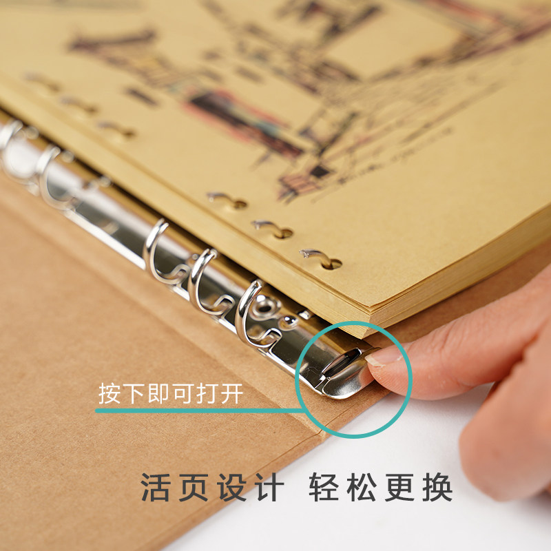 活页牛皮纸本硬壳空白本加厚内页笔记本高颜值绘本钢笔画插画本子