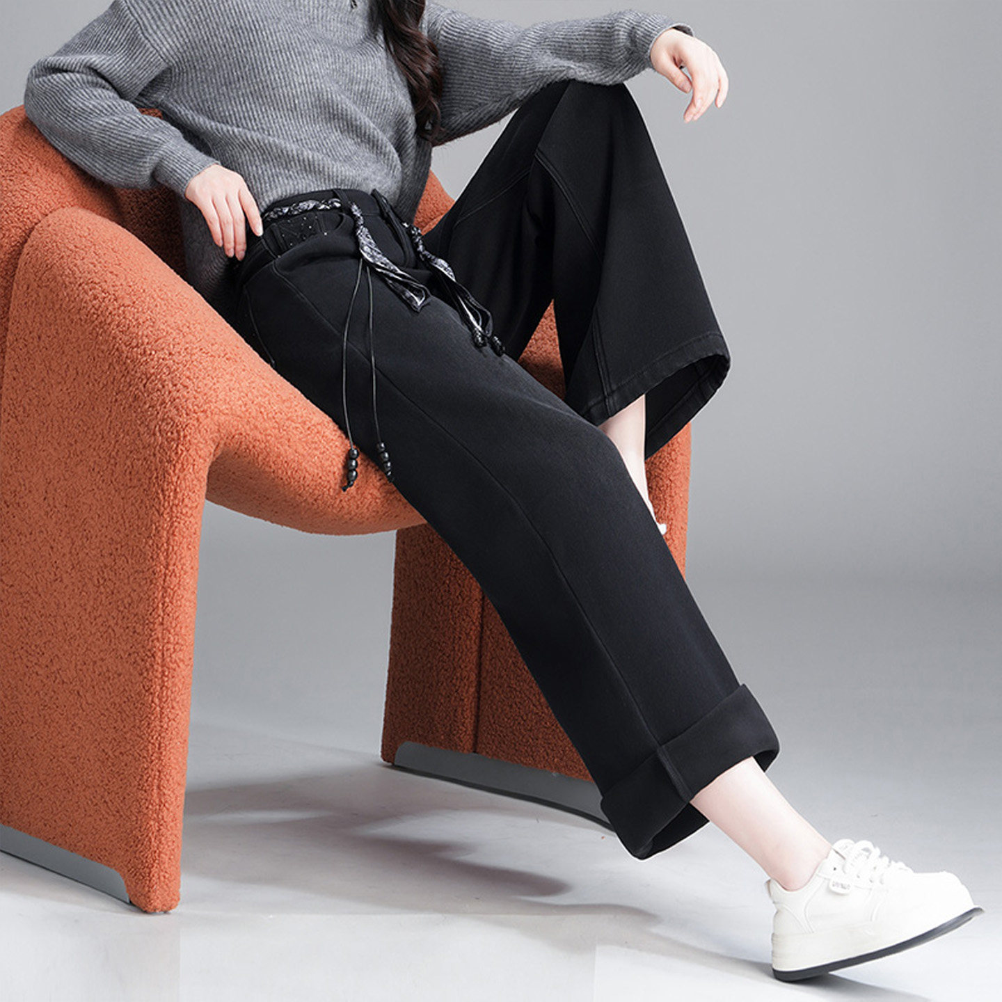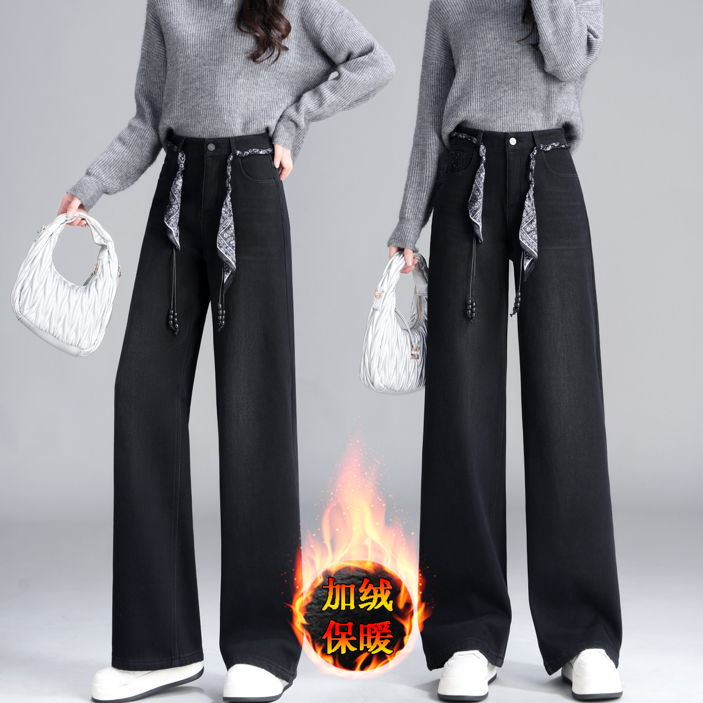 黑色加绒牛仔裤子女款秋冬季2025新款高腰百搭显瘦直筒宽松阔腿裤