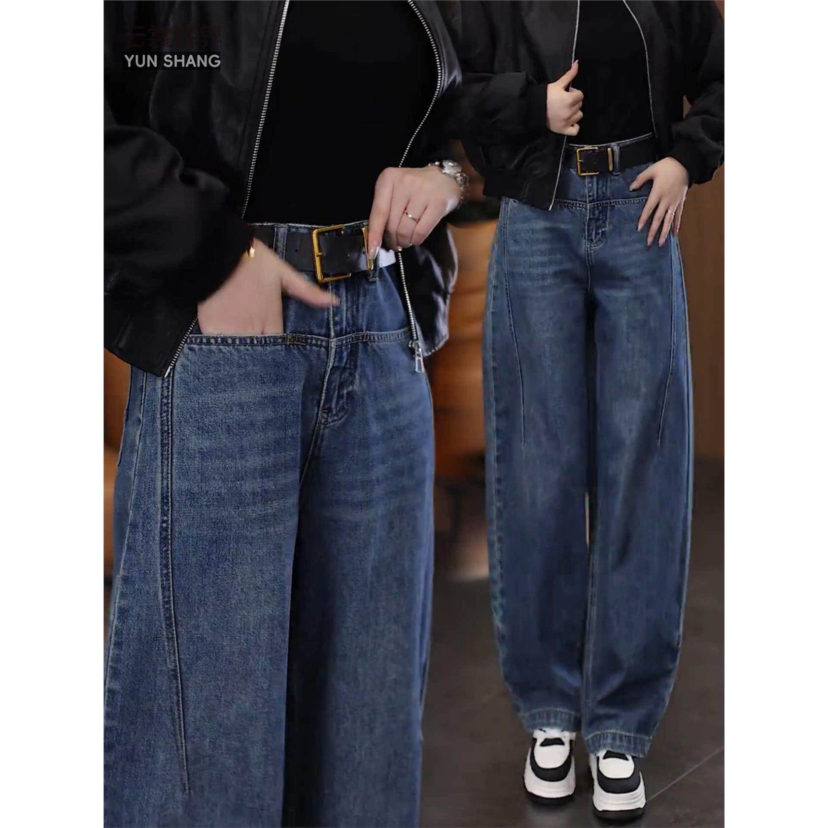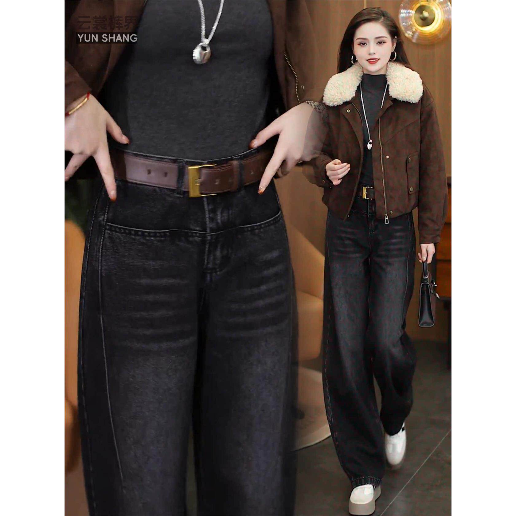 九分加绒牛仔裤女2025新款小个子裤子女款弯刀裤阔腿宽松覆古长裤