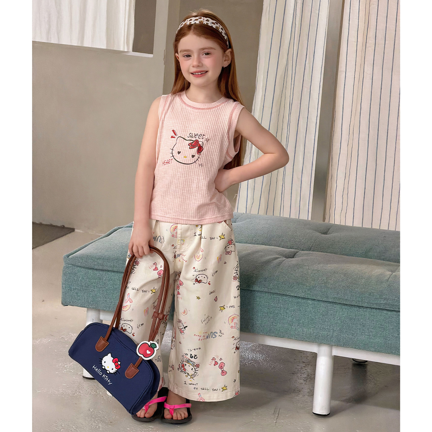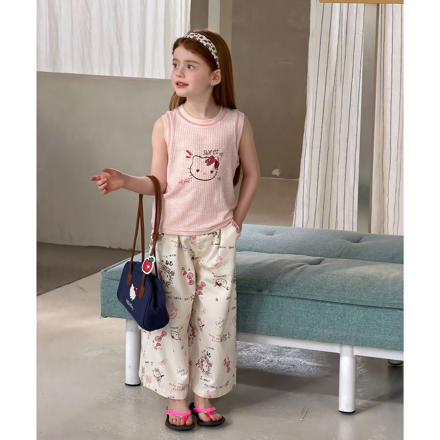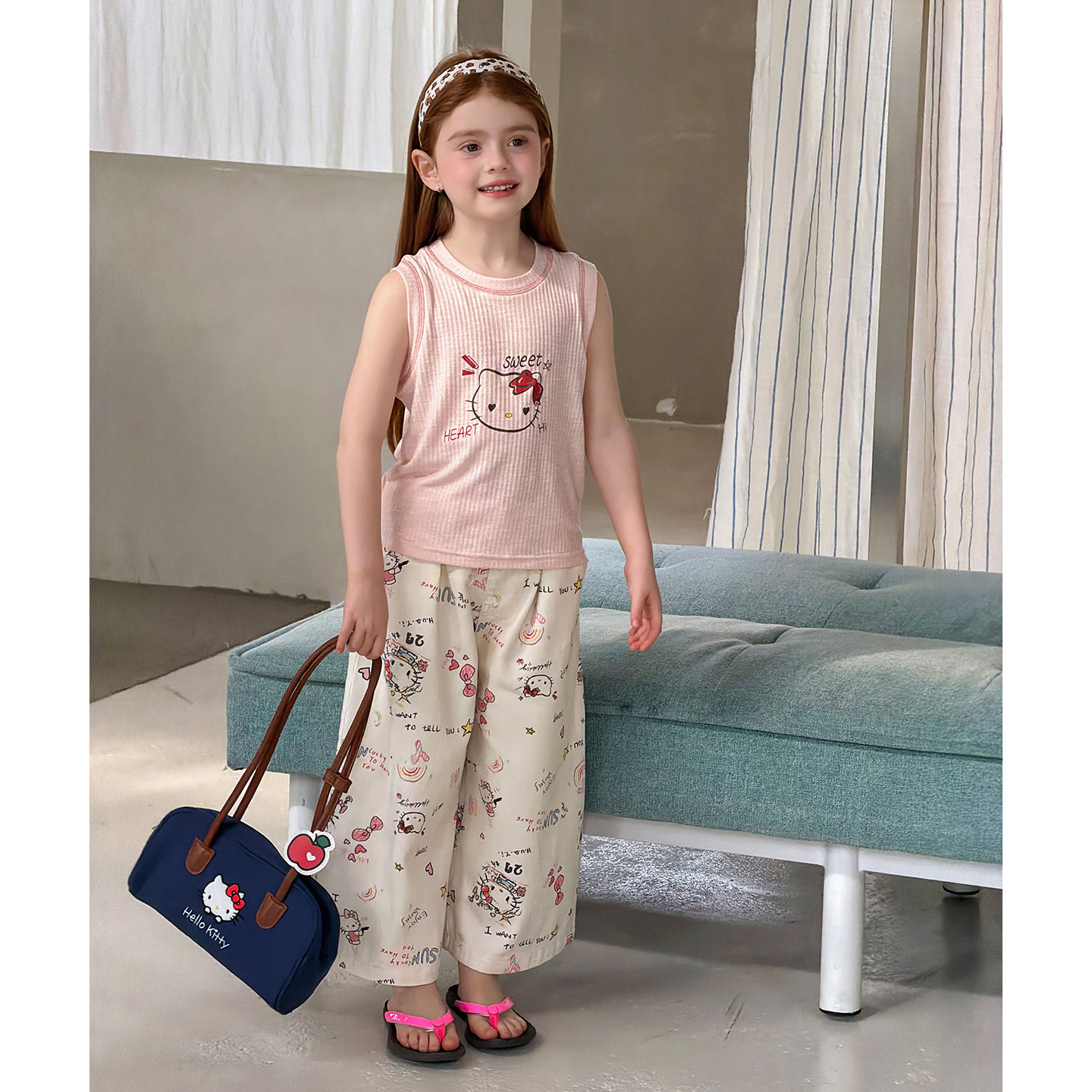 女童韩版卡通印花背心阔腿裤春夏两件套2026儿童春装可爱裤子套装