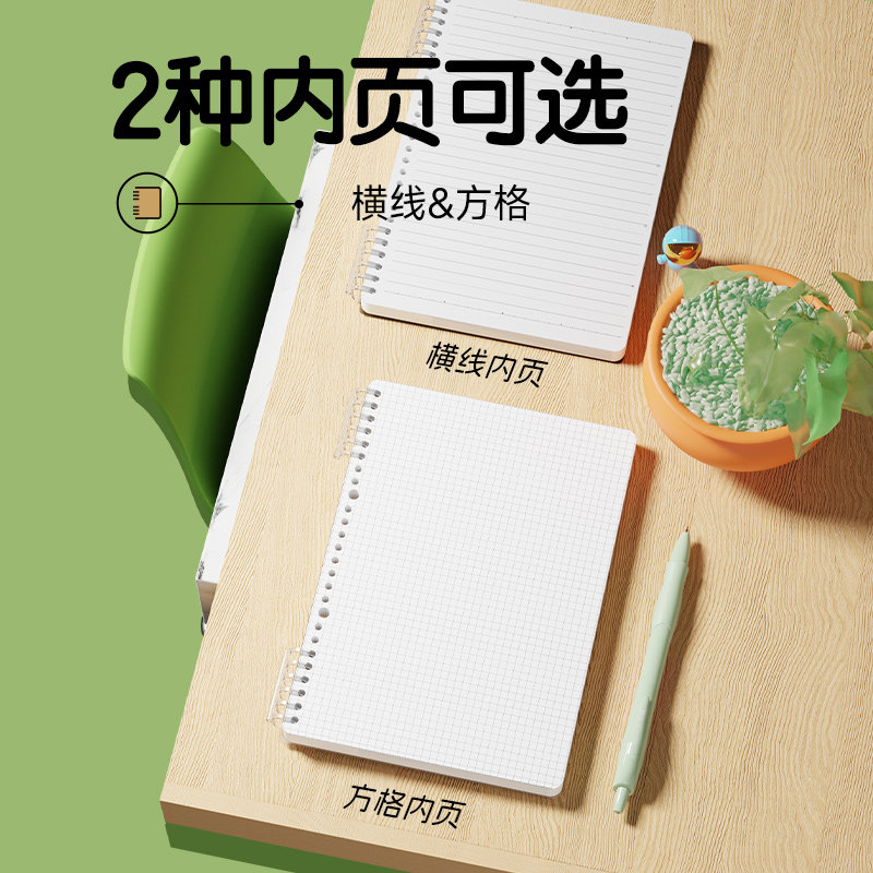 晨光B5活页线圈本不硌手横线笔记本子网格多规格A4可拆卸替芯加厚学生初高中生考研错题本ins风线圈本