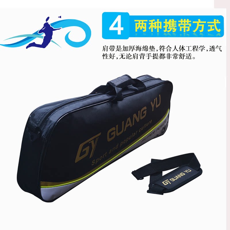 4支装羽球拍单肩包防水尼龙背包运动手提包大容量网球拍背包矩形